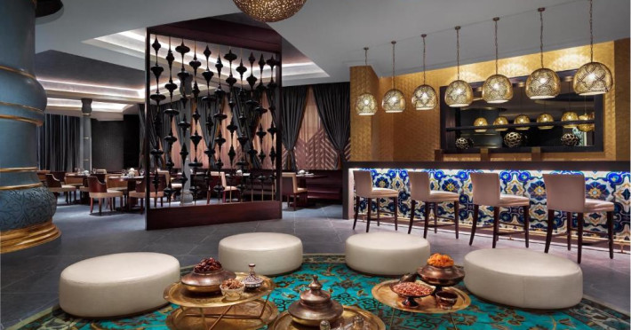 Fairmont Ajman oferă 7 restaurante și lounge-uri. Restaurantul turcesc serveşte preparate turcești populare, într-un cadru otoman tradiţional. Spectrum oferă bucătărie deschisă şi preparate din bucătăria internaţională. Oaspeţii pot fuma narghilea într-un lounge în aer liber, cu vedere la mare.