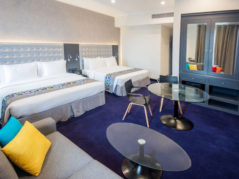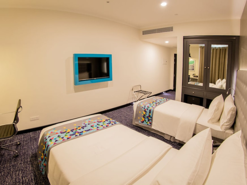 ZMAX Fairway Colombo, part of the ZMAX Hotels, is centrally located in Colombo, within walking distance of the Dutch Hospital Shopping Precinct and the Colombo World Trade Center. The hotel offers complimentary wireless internet access and features 181 guestrooms with air conditioning, flat-screen TVs, and coffee/tea makers. Some rooms include a separate living room and balcony or terrace. The hotel has 4 restaurants, a coffee shop/cafe, and a bar/lounge. Guests can enjoy a 24-hour fitness center, a rooftop terrace, and a complimentary daily reception. Additional amenities include a business center, concierge services, express check-in/check-out, and meeting facilities. Airport transportation and taxi/car hire services are available for a surcharge. On-site parking is complimentary. The Fairway Colombo is a hotel.