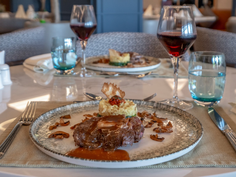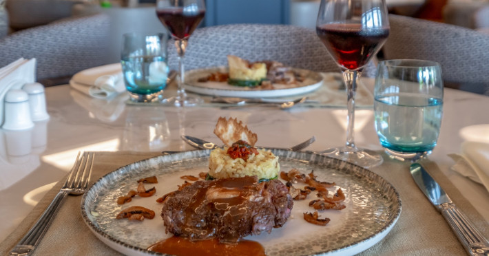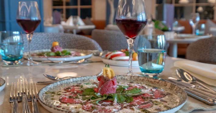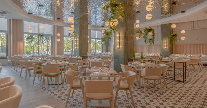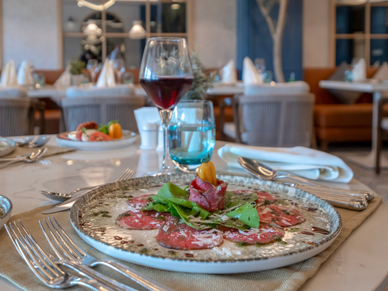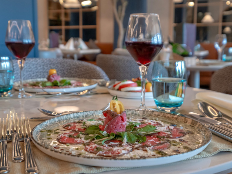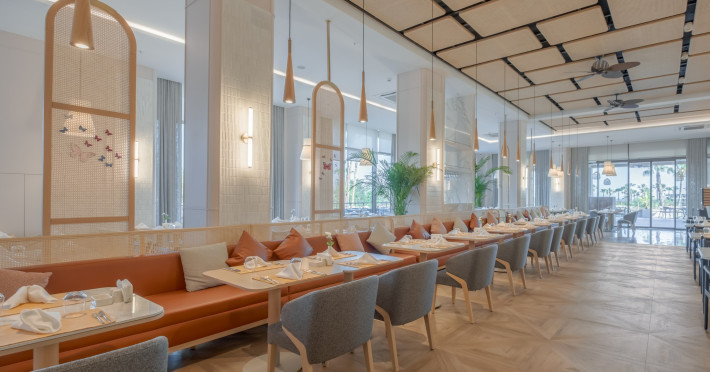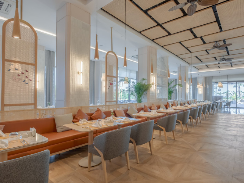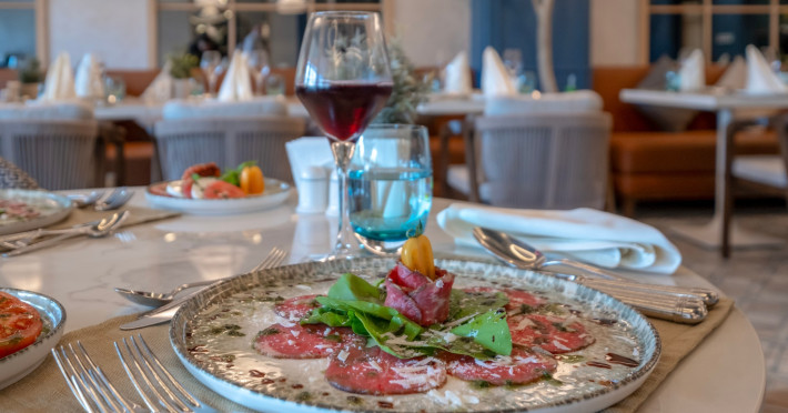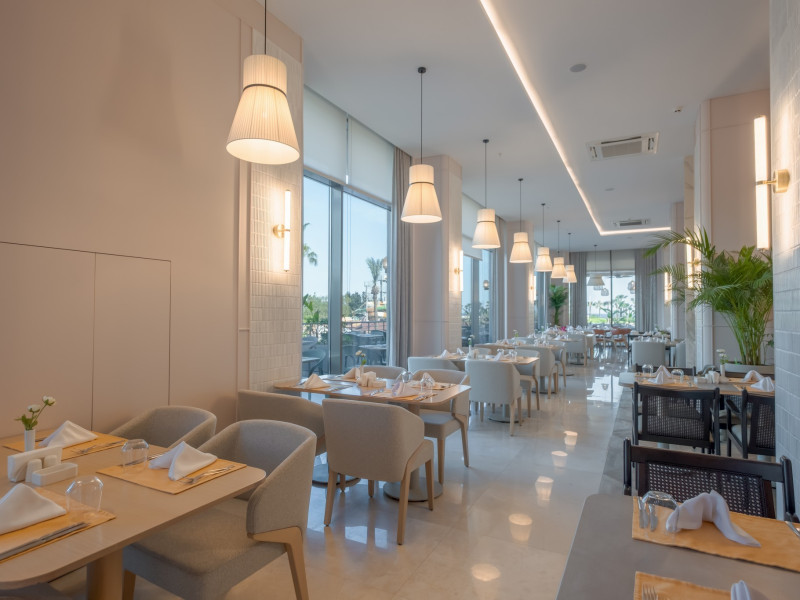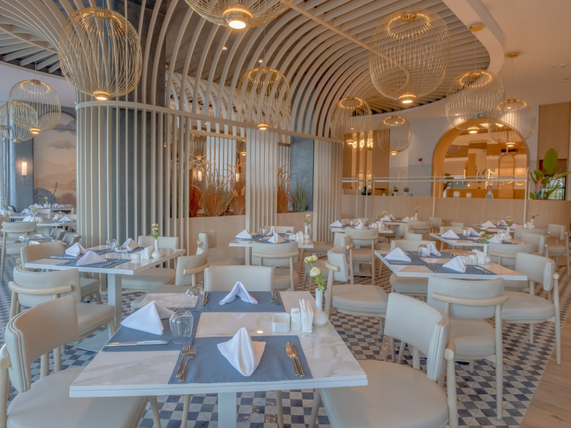 Restaurant principal: 07.00–11.00 mic dejun tip bufet, 12.30–14.00 pranz tip bufet, 18.45–21.00 cina tip bufet, 23.00–06.00 gustari de noapte (supa, produse de patiserie, fructe), cafea, ceai si bauturi nealcoolice servite la micul dejun, pranz si cina. bauturi, bere, vin si bauturi alcoolice selectate (produse local, la robinet), diete, bufet vegetarian si pentru copii