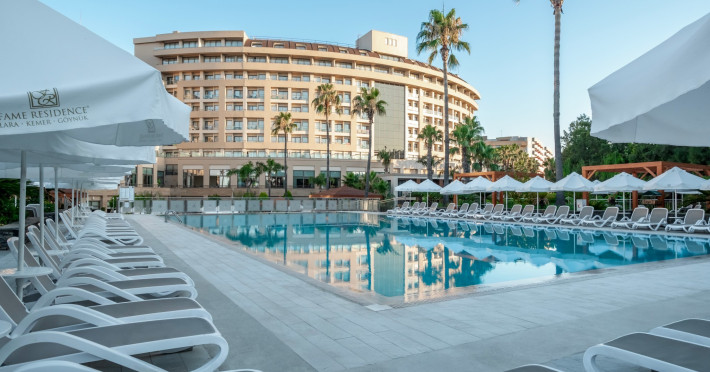 FAME RESIDENCE LARA este un hotel de inalta calitate cu servicii excelente, fiind situat chiar langa plaja cu nisip in cea mai cautata zona din Antalya - in Lara. Centrul Antalya in sine, care se afla la aproximativ 16 kilometri de hotel, este usor accesibil cu microbuzele publice locale sau taxiurile. Hotelul va satisface clientii de toate categoriile de varsta cu serviciile sale, calitatea cateringului si oferta de activitati sportive si de relaxare.