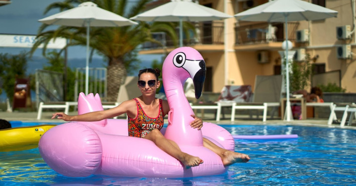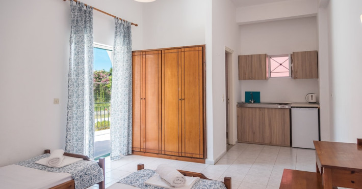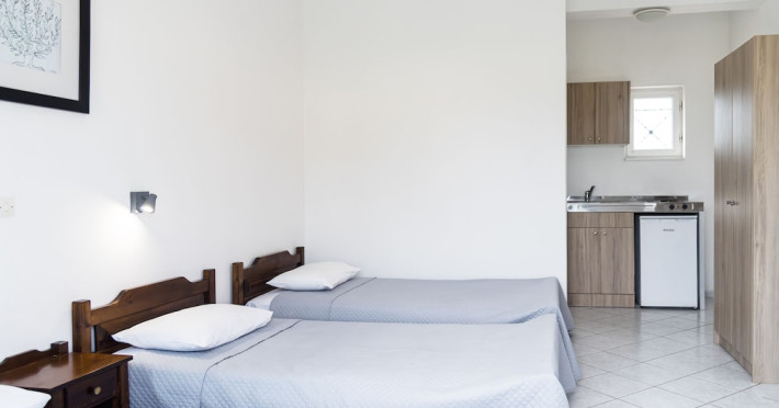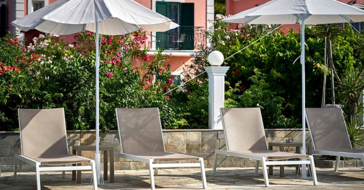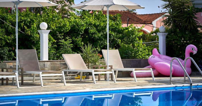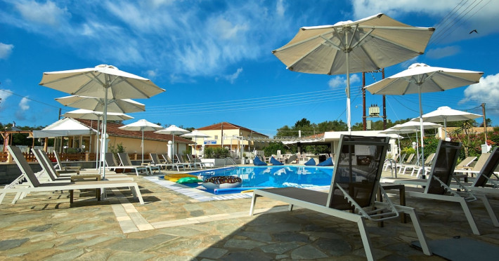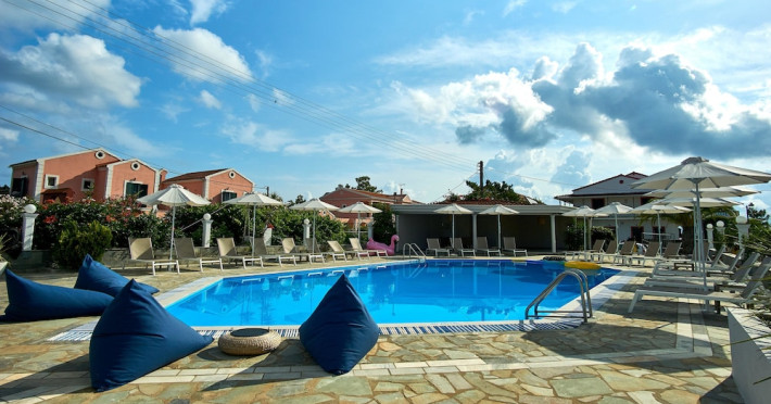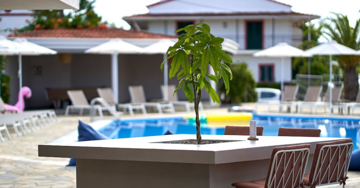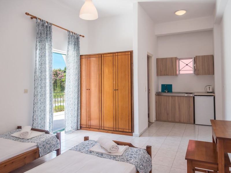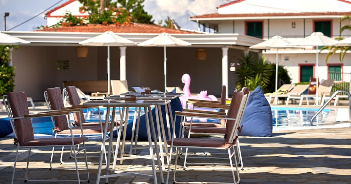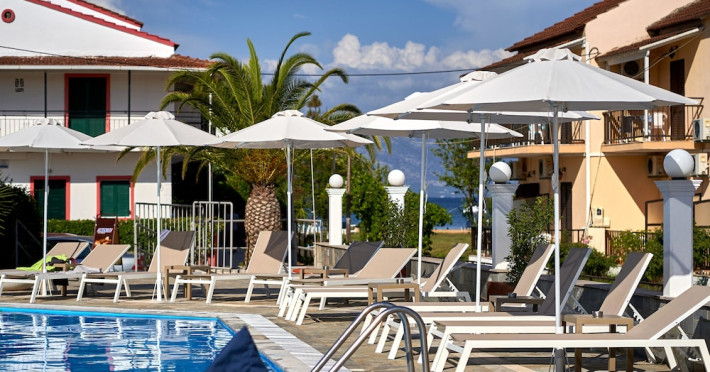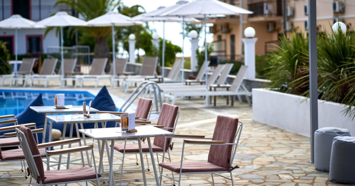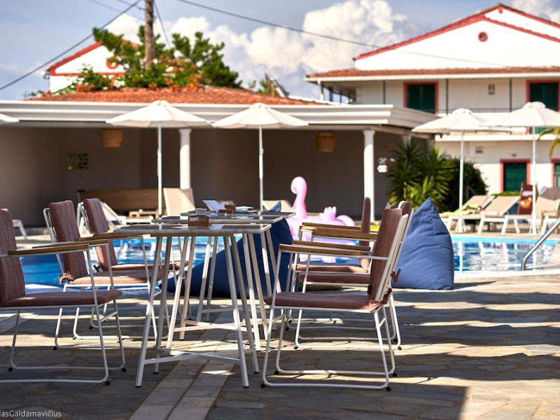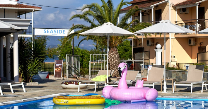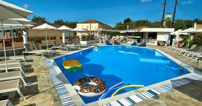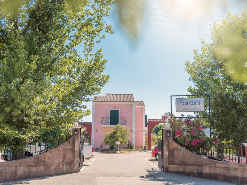 Located on the beach in Corfu, Fardini Seaside Hotel offers 18 guestrooms with kitchenettes featuring refrigerators and stovetops. Guests can enjoy international cuisine at the poolside restaurant and bar, or opt for room service during limited hours. A complimentary daily reception is offered. Cooked-to-order breakfasts are available daily from 9:00 AM to 1:00 PM for a fee. The hotel features an outdoor pool, bicycles for rent, complimentary wireless internet access, an arcade/game room, and massage and body treatments. Additional amenities include dry cleaning/laundry services, luggage storage, and laundry facilities. A roundtrip airport shuttle is available 24 hours for a surcharge, and free self parking is provided onsite. Housekeeping is provided daily, and conveniences include desks and coffee/tea makers. The hotel is near Agios Petros Beach and Lefkimmi Port, and the nearest major airport is Ioannis Kapodistrias Airport (CFU). The Fardini Seaside Hotel is a hotel.