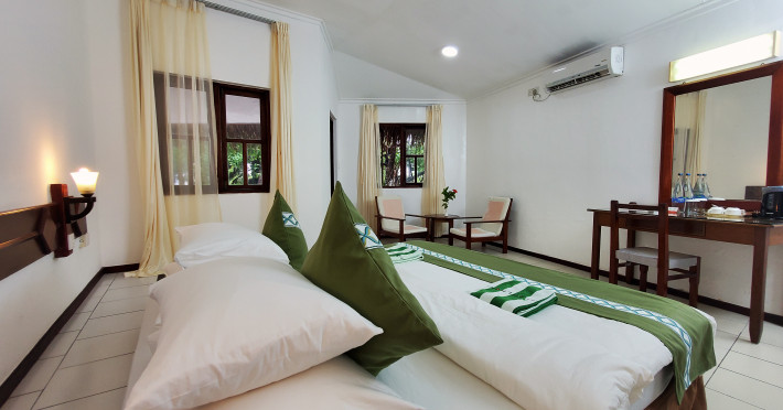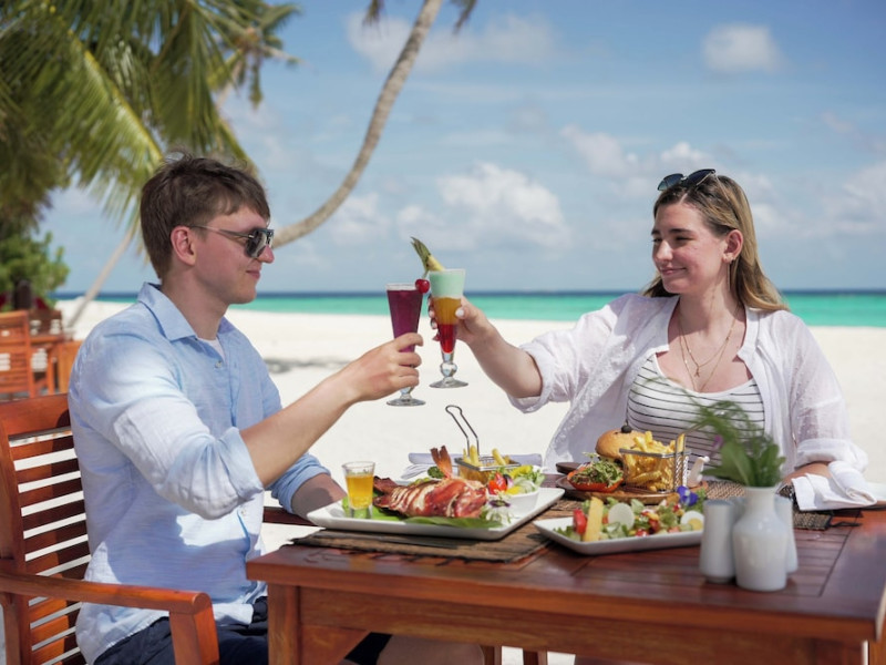 Fihalhohi Maldives, located on Fihalhohi Island in the South Male Atoll, is a beachfront resort a 45-minute speedboat ride from Malé International Airport (mandatory transfer, charges apply upon arrival). The resort boasts 150 air-conditioned rooms, each with a private balcony, minibar, TV, bathroom amenities, and complimentary Wi-Fi. Onsite amenities include a full-service spa, 24-hour fitness center, karaoke, a computer station, laundry services, and a 24-hour front desk. Dining options include the Palm Grove Restaurant (with garden views) and room service (limited hours), complemented by two bars/lounges and three beach bars. A complimentary buffet breakfast is served daily (7:00 AM - 9:00 AM). All-inclusive rates are available (some exclusions apply). Water sports, fishing, and a PADI-certified dive school are available. Nearby beaches include Rihiveli, Olhuveli, Kandooma, Biyadoo, Dhigufinolhu, and Bodu Hurraa. Shuttle service (surcharge) is available within 3 miles. Babysitting services are available for a surcharge. The Fihalhohi Maldives is a hotel.