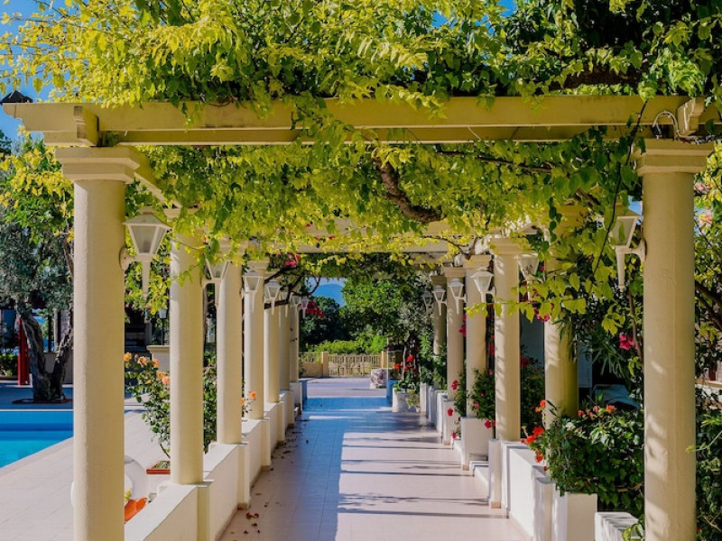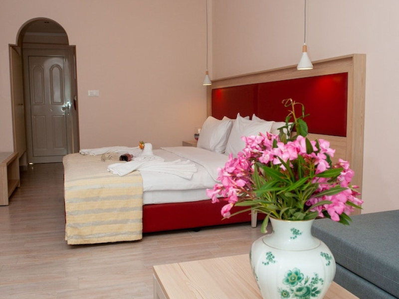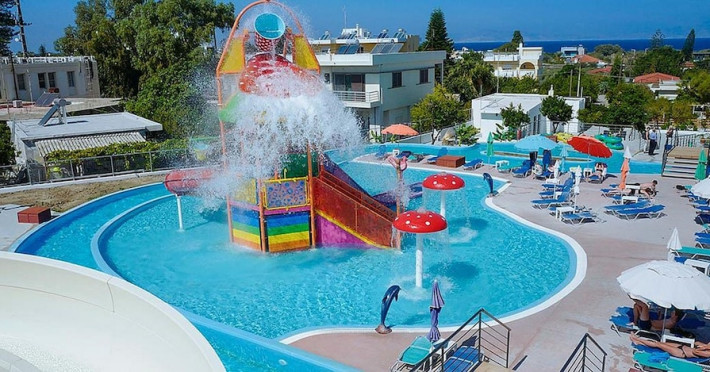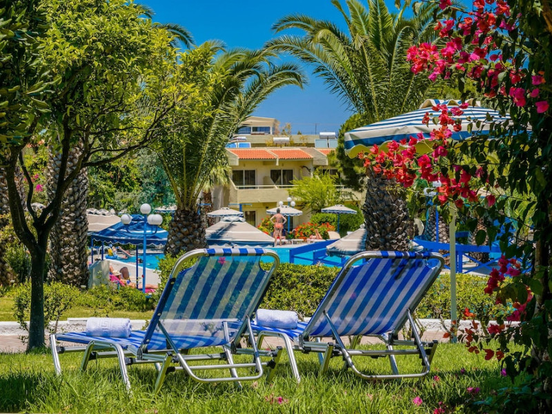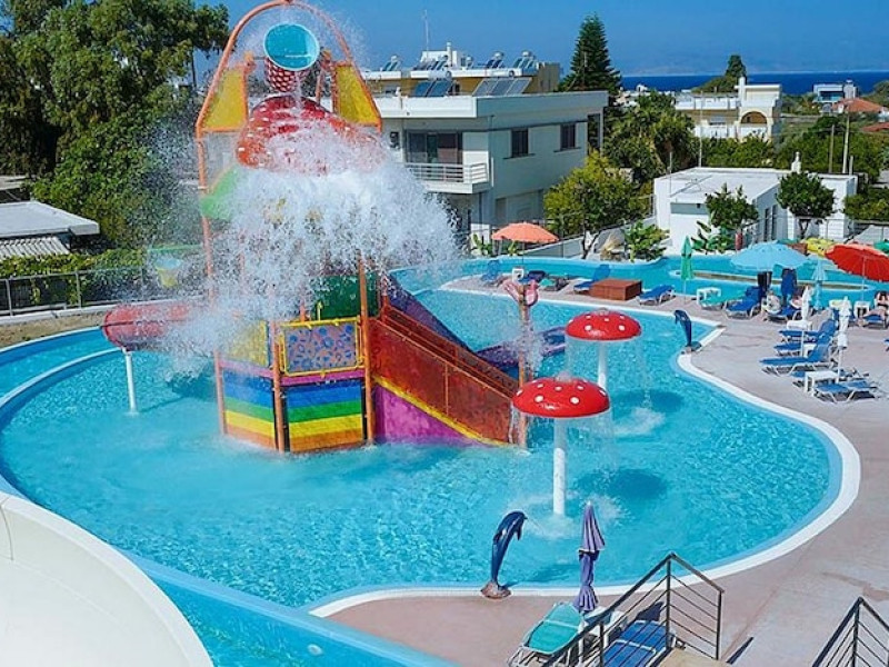 Located at the foot of Mount Filerimos, between Ialyssos and Kremasti on Rhodes, Filerimos Village Hotel offers a tranquil escape approximately 500 meters to 1.5 km from the beach. The hotel is near the airport and close to Ialyssos and Kremasti (2km) and Rhodes Town (8km). This all-inclusive property features a Mediterranean garden, swimming pool(s), restaurant, bar(s), snack bar/deli, water park, lazy river, kids' club, children's playground, shared lounge, and terrace. Guests can enjoy a complimentary buffet breakfast. Air-conditioned rooms include a balcony or terrace, private bathroom with bathtub or shower, complimentary toiletries, hairdryer, TV (flat-screen with satellite channels), mini-fridge/refrigerator, seating area, tiled floors, and free WiFi. Amenities include complimentary wireless internet access, concierge services, babysitting (surcharge), a 24-hour front desk, dry cleaning/laundry services, luggage storage, and free self-parking. Guests can enjoy karaoke, table tennis, and tennis, with bike and car hire available. Staff speaks German, Greek, and English. Nearby attractions include Ialyssos Beach and the Temple of Apollon.