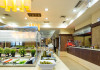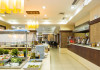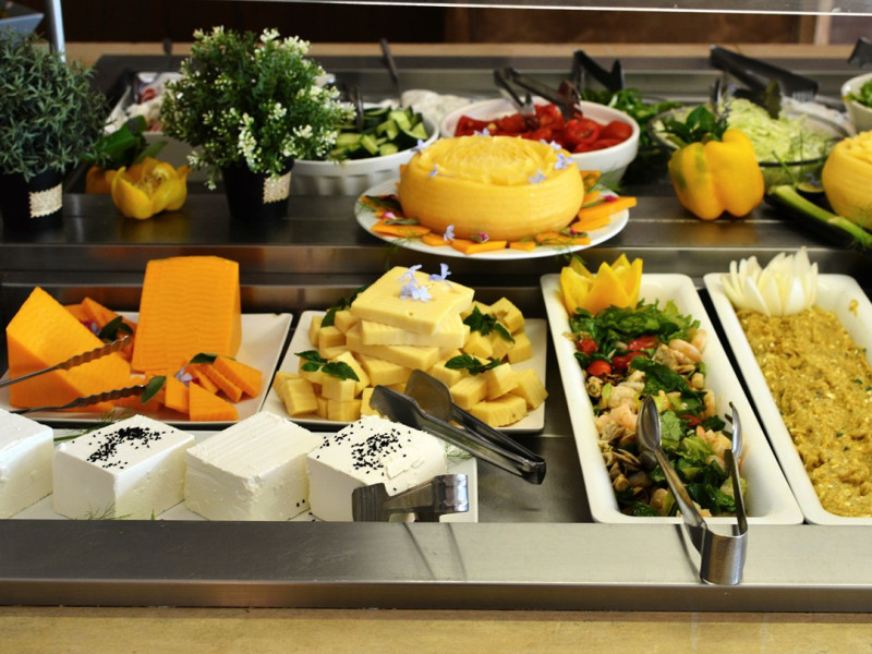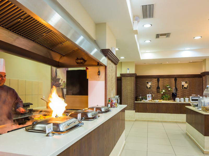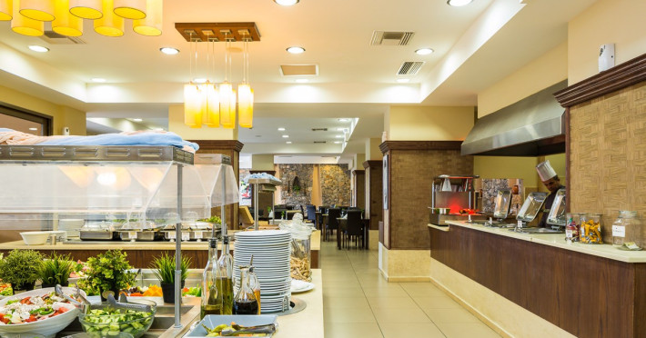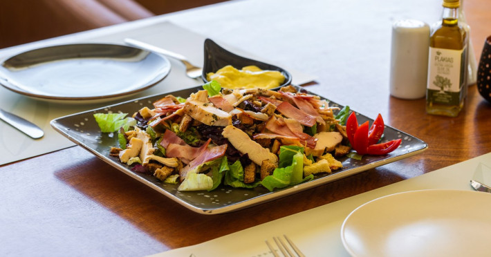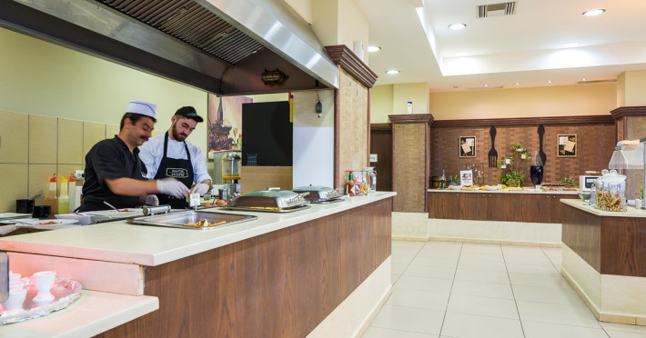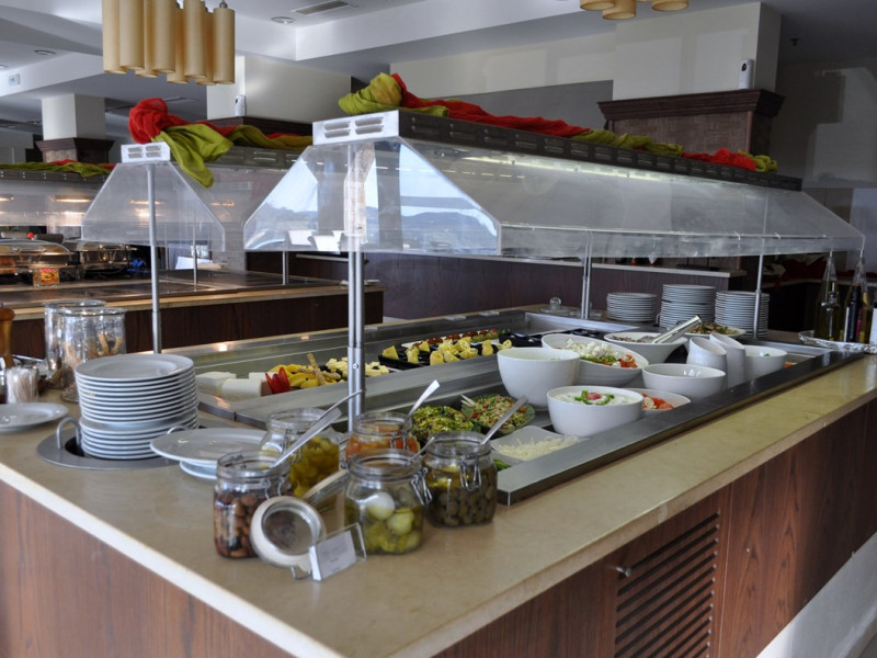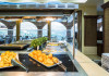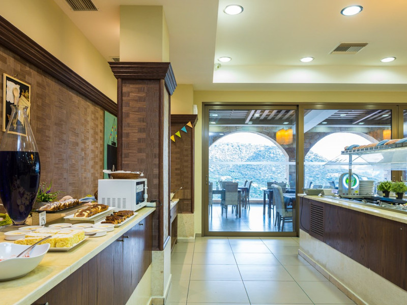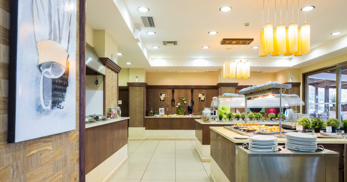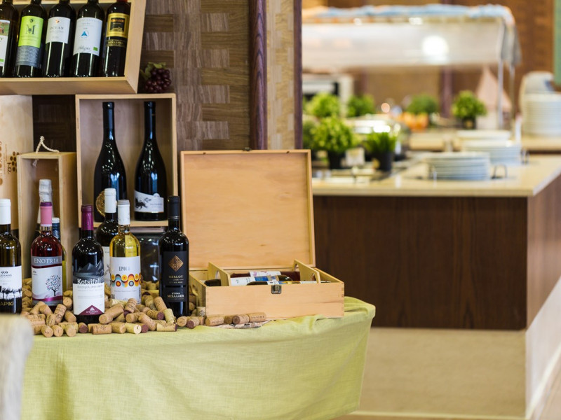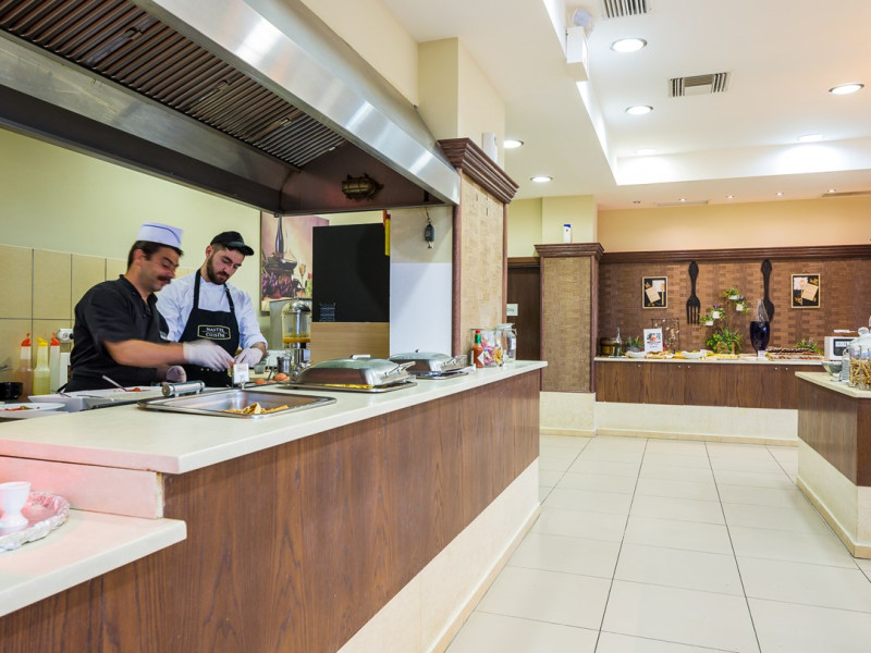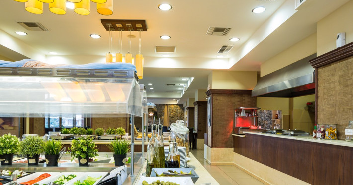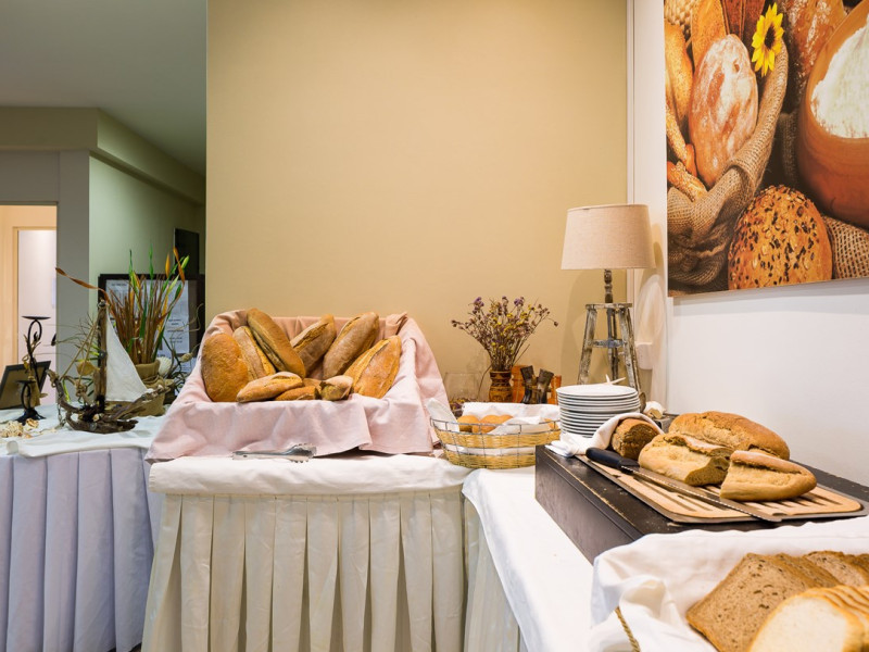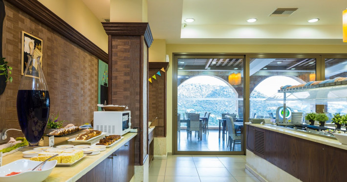 Tempting choices are prepared on a daily basis by the hotel's executive chef and tantalize you with their variety, taste, and quality of palatable local products. The extensive buffets for breakfast, lunch, and dinner are going to be a real temptation that no one can resist. Viewing the Pools and the gardens with the blinding sunlight or the soft wavering of the candles, the wonderful atmosphere of the lounge bar will fascinate you and capture your imagination.Every Thursday at noon, a cooking lesson on creating Greek Specialties is provided free from our kitchen Chef.