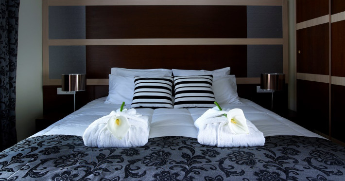 The renovated resort offers 70 superior double or twin rooms with large balconies or terraces, and 45 one-bedroom family suites with large balconies or terraces.