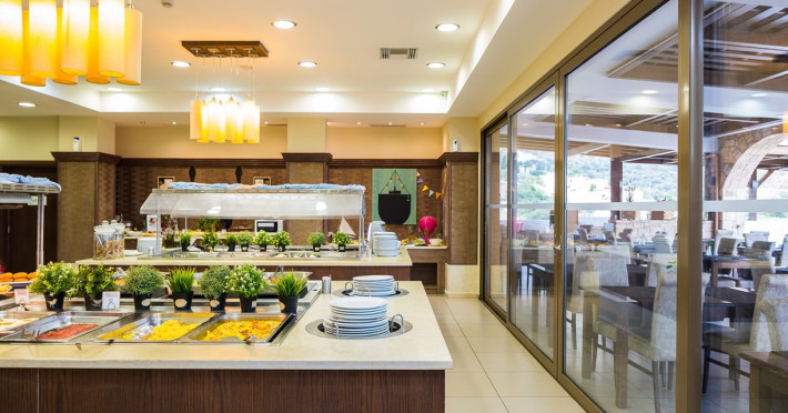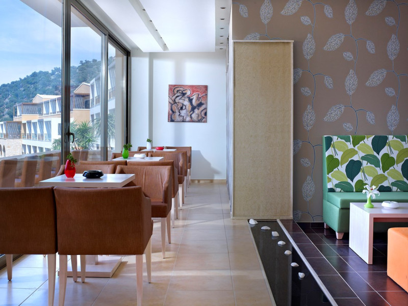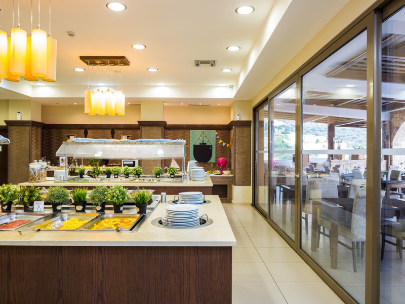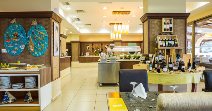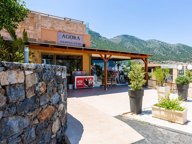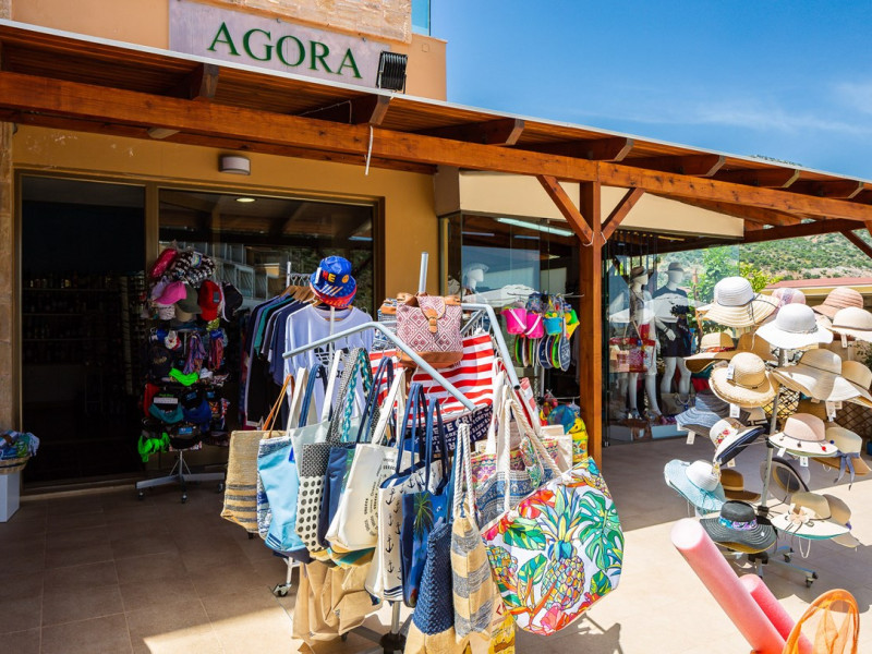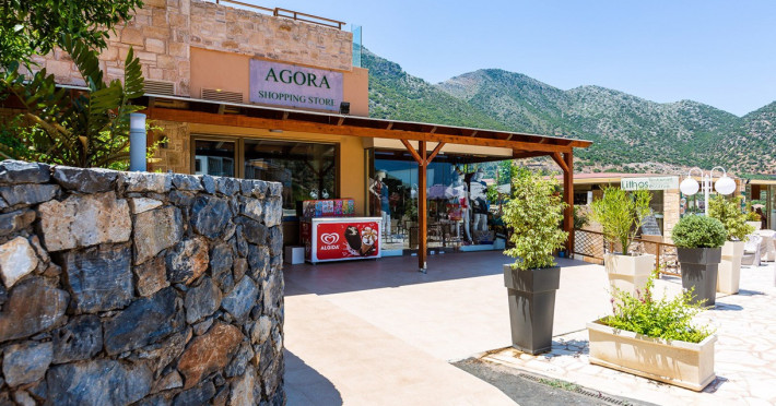 Dress code: Gentlemen are kindly required to enter the restaurant with long trousers and shirts. Alternatively, you can enjoy Greek specialties at lunchtime in the open-air a la carte restaurant/snack bar with some of the dishes cooked right before your eyes. There is a poolside bar that offers a selection of coffee, juices, alcoholic and non-alcoholic drinks, and ice cream.Everything you might need during your stay, you can find within the village center.The shopping area includes boutiques, jewelry shops to create the perfect outfit for a night out in the town. There are also mini markets / local products shops.