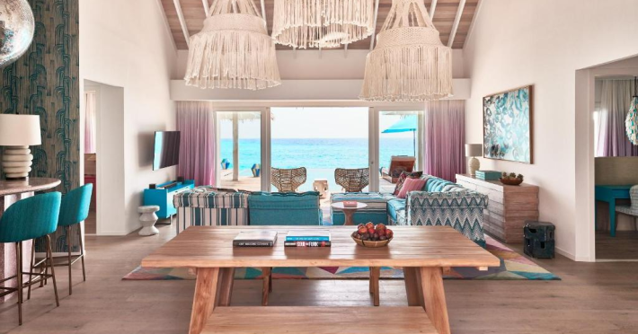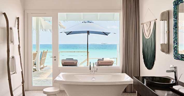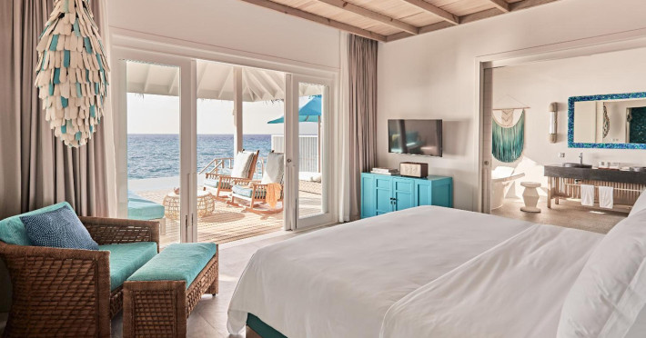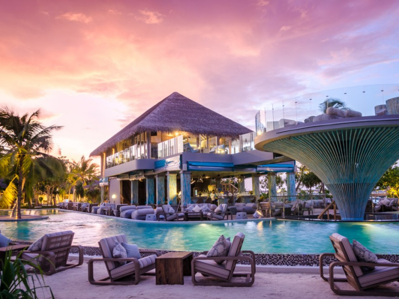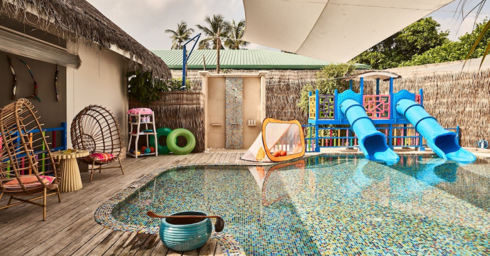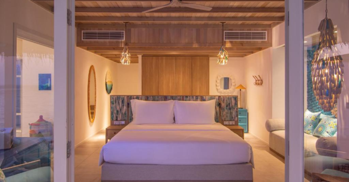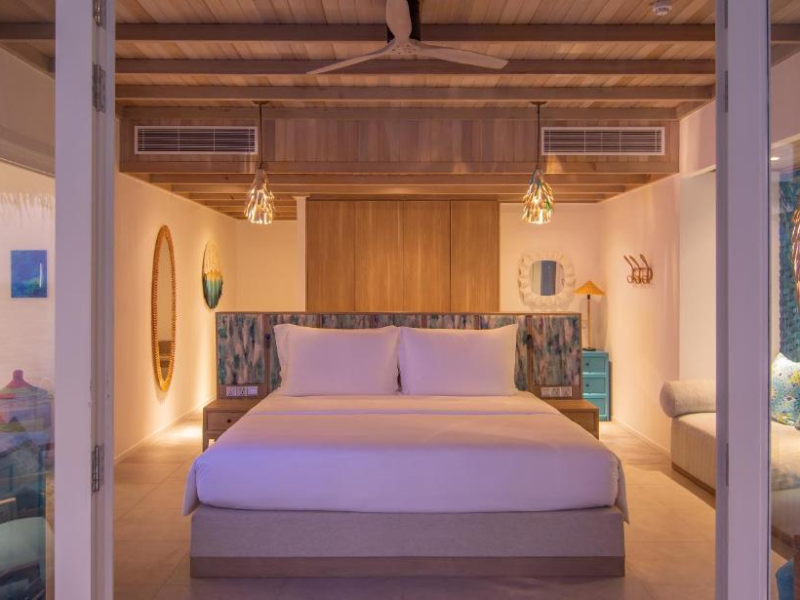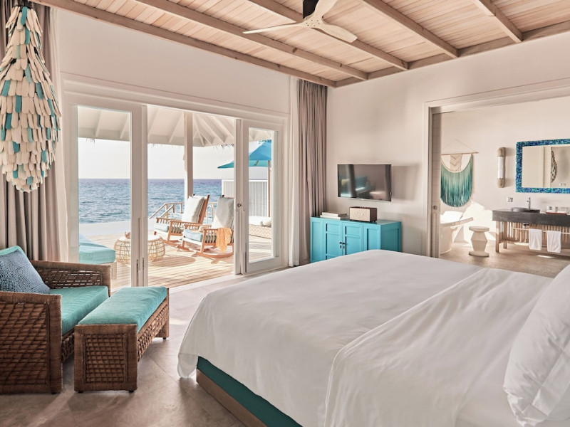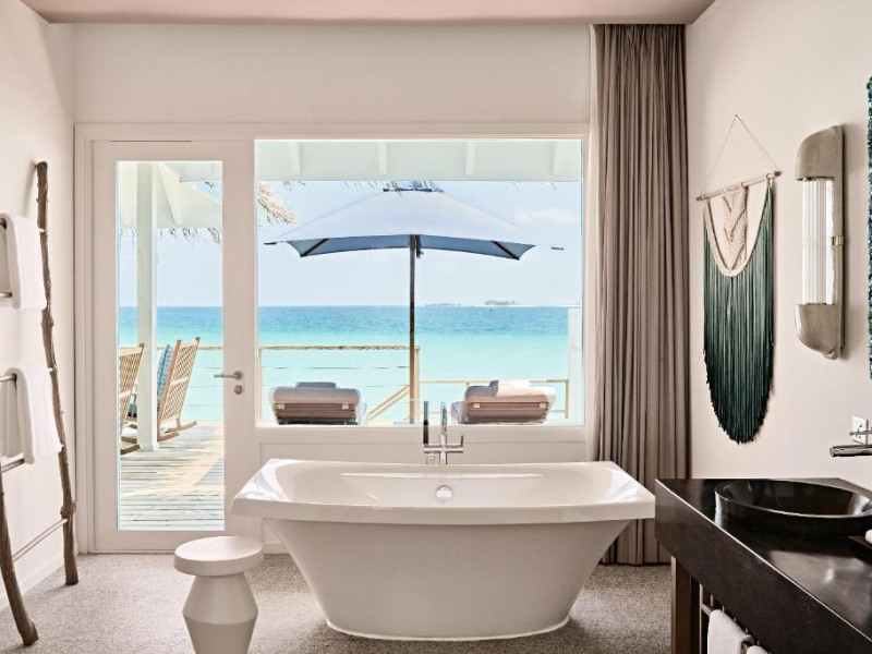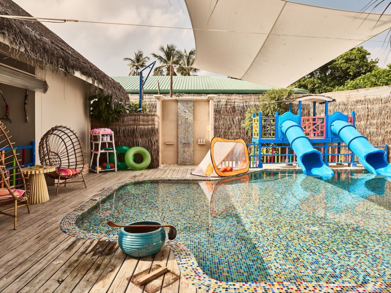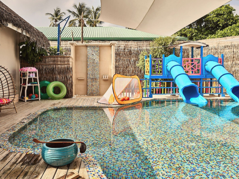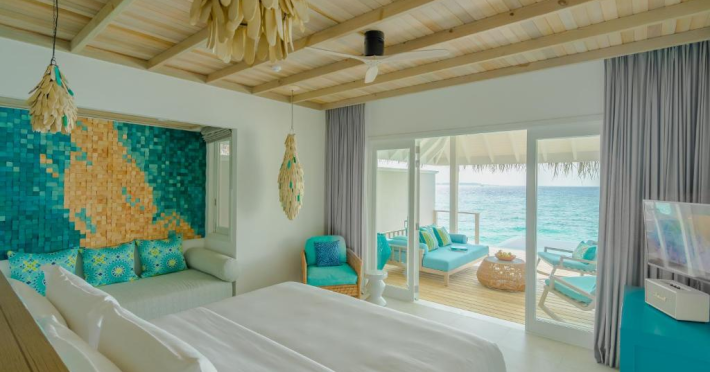Seaside Finolhu, a member of Design Hotels, is a luxury resort in Baa Atoll, a UNESCO World Biosphere Reserve in the Maldives. Offering 125 villas, each individually decorated, with choices of overwater or beachfront locations; many feature private pools. All villas include spacious living areas, minibars, flat-screen TVs, private furnished patios, and bathrooms with separate bathtubs and showers. Dining options include Beach Kitchen (international), Kanusan (modern Japanese), Arabian Grill (Middle Eastern), and Crab Shack (toes-in-the-sand). Milk LAB offers snacks. The resort also features a complimentary water park, outdoor pool, outdoor tennis court, full-service spa, kids' club (Oceaneers Club) with an outdoor play area, children's pool, and art studio, a dive center, watersports center, indoor and outdoor gym, and yoga pavilion. Additional amenities include complimentary Wi-Fi, 24-hour room service, daily complimentary reception, multiple bars and lounges, concierge services, babysitting (surcharge), and luggage storage. All-inclusive rates are available. Airport transfers are available for a surcharge (limited hours). The resort is 25.1 km from Hibalhidoo and 32.2 km from Kihaadhuffaru Island Beach. Seaplane transfer from Malé International Airport (30 minutes) or a 15-minute flight to Dharavandhoo Domestic Airport followed by a 25-minute speedboat ride are available. The Finolhu a Seaside Collection Resort is a hotel.
