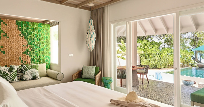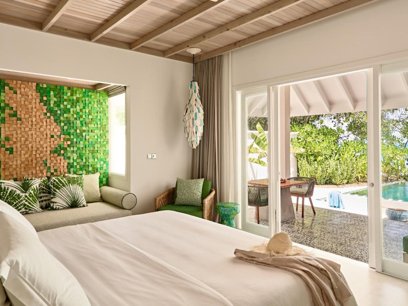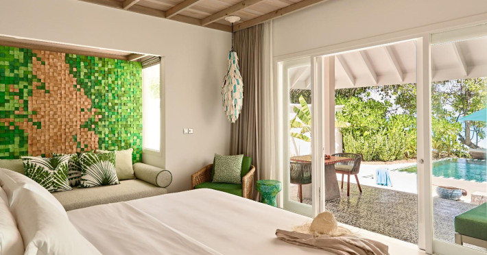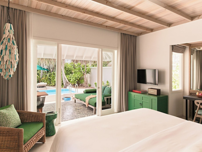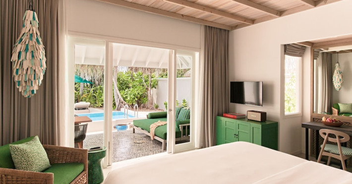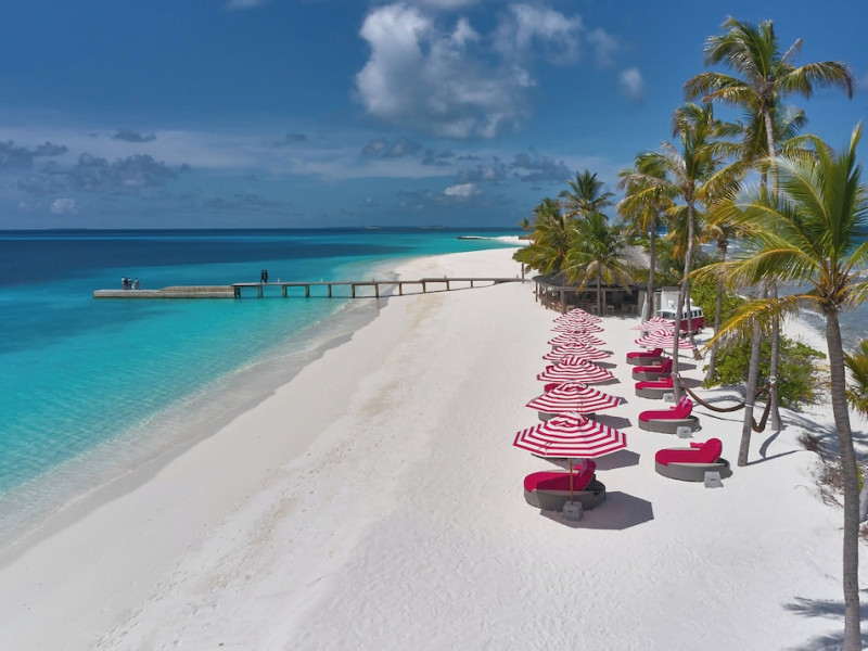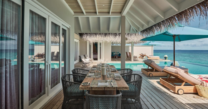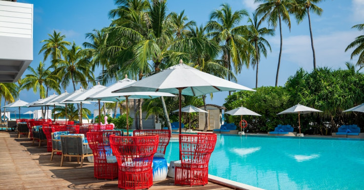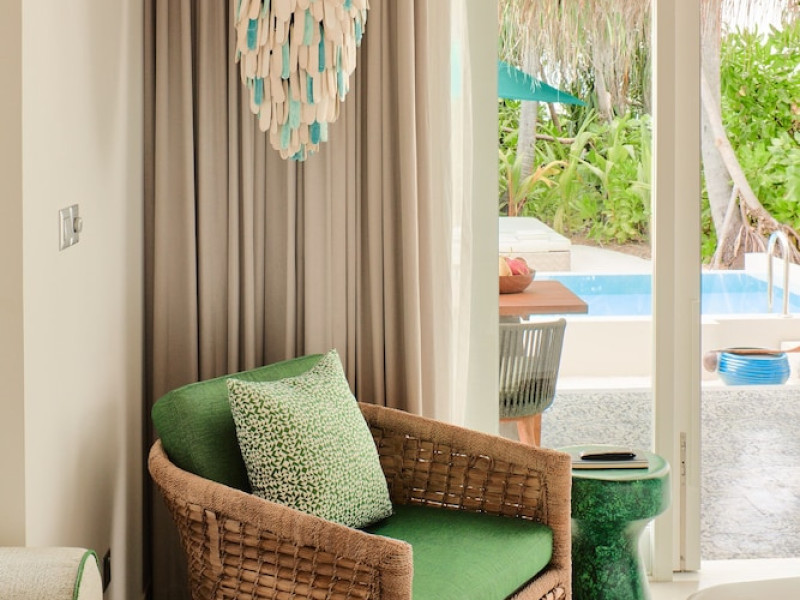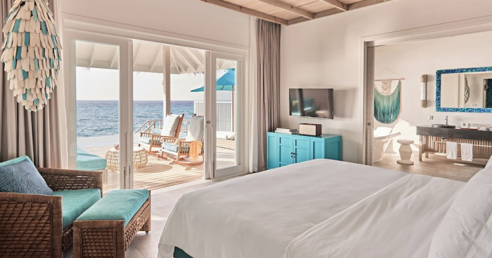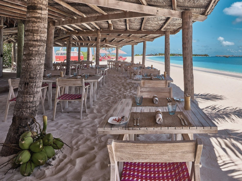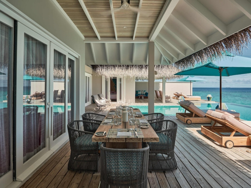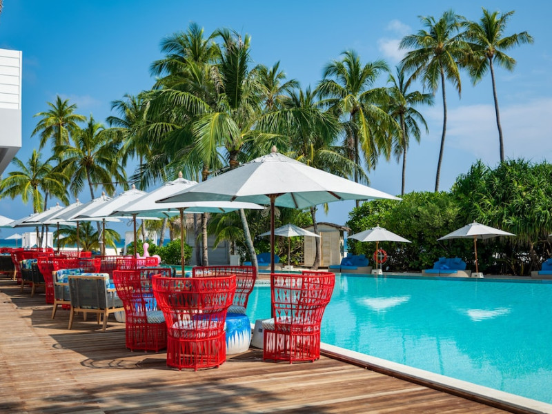 Seaside Finolhu, a member of Design Hotels, is a luxury resort in Baa Atoll, a UNESCO World Biosphere Reserve in the Maldives. Offering 125 villas, each individually decorated, with choices of overwater or beachfront locations; many feature private pools. All villas include spacious living areas, minibars, flat-screen TVs, private furnished patios, and bathrooms with separate bathtubs and showers. Dining options include Beach Kitchen (international), Kanusan (modern Japanese), Arabian Grill (Middle Eastern), and Crab Shack (toes-in-the-sand). Milk LAB offers snacks. The resort also features a complimentary water park, outdoor pool, outdoor tennis court, full-service spa, kids' club (Oceaneers Club) with an outdoor play area, children's pool, and art studio, a dive center, watersports center, indoor and outdoor gym, and yoga pavilion. Additional amenities include complimentary Wi-Fi, 24-hour room service, daily complimentary reception, multiple bars and lounges, concierge services, babysitting (surcharge), and luggage storage. All-inclusive rates are available. Airport transfers are available for a surcharge (limited hours). The resort is 25.1 km from Hibalhidoo and 32.2 km from Kihaadhuffaru Island Beach. Seaplane transfer from Malé International Airport (30 minutes) or a 15-minute flight to Dharavandhoo Domestic Airport followed by a 25-minute speedboat ride are available. The Finolhu a Seaside Collection Resort is a hotel.
