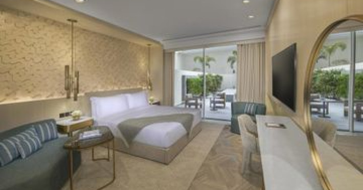 Near Lost Chambers Aquarium. With a stay at FIVE Palm Jumeirah Dubai in Dubai (Palm Jumeirah), youll be a 3-minute drive from Nakheel Mall and 8 minutes from Aquaventure. This beach resort is 4.9 mi (7.9 km) from Skydive Dubai and 6.1 mi (9.8 km) from Emirates Golf Club. Make yourself at home in one of the 470 guestrooms featuring minibars and LED televisions. Your pillowtop bed comes with down comforters and Egyptian cotton sheets. Rooms have private balconies. Complimentary wired and wireless internet access keeps you connected, and satellite programming provides entertainment. Bathrooms with separate bathtubs and showers feature deep soaking bathtubs and designer toiletries. Enjoy Chinese cuisine at The Penthouse Dubai, one of the resorts 6 restaurants, or stay in and take advantage of the 24-hour room service. Snacks are also available at the 2 coffee shops/cafes. Wind down with a drink at one of the 6 bars/lounges or 2 poolside bars. Buffet breakfasts are available daily from 6:30 AM to 11 AM for a fee. Pamper yourself with onsite massages, body treatments, and facials. After dipping into one of the 6 outdoor swimming pools, you can spend some time at the private beach. Additional features at this resort include complimentary wireless internet access, concierge services, and babysitting (surcharge).