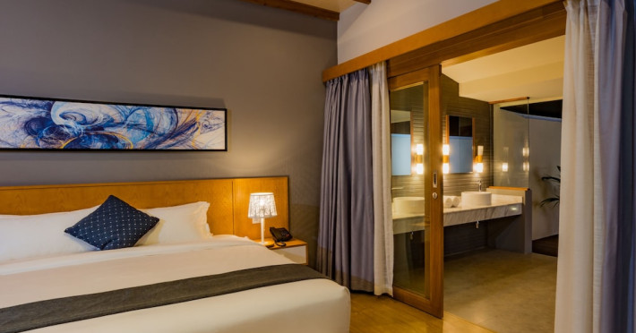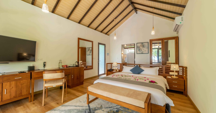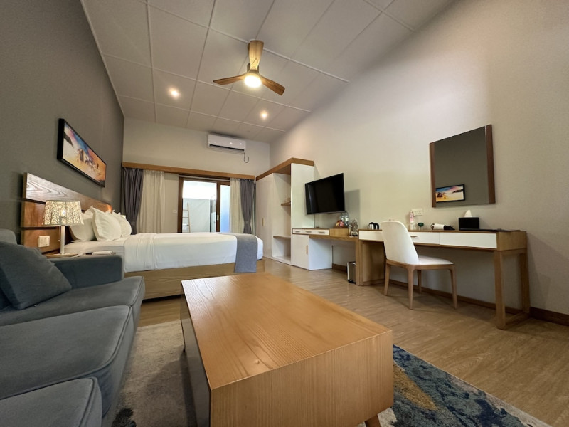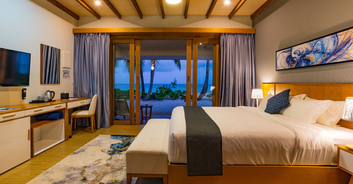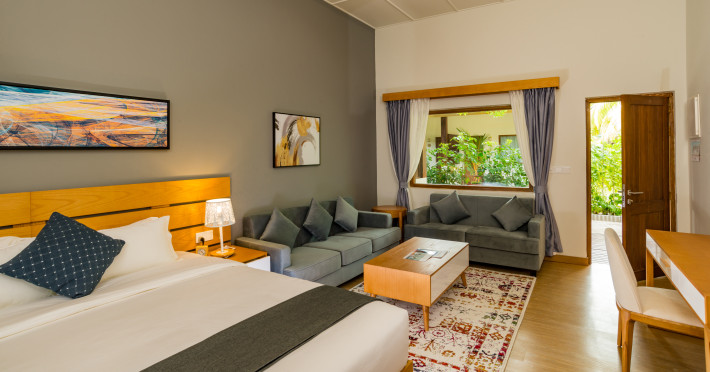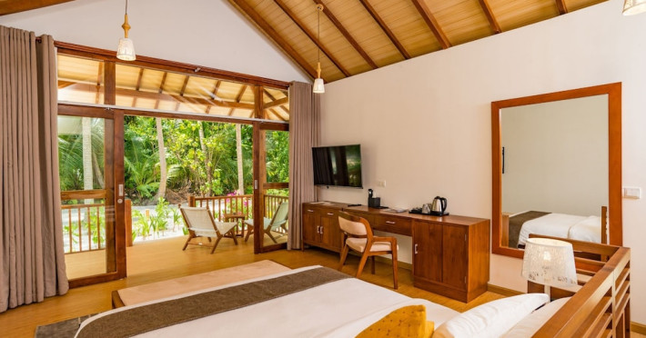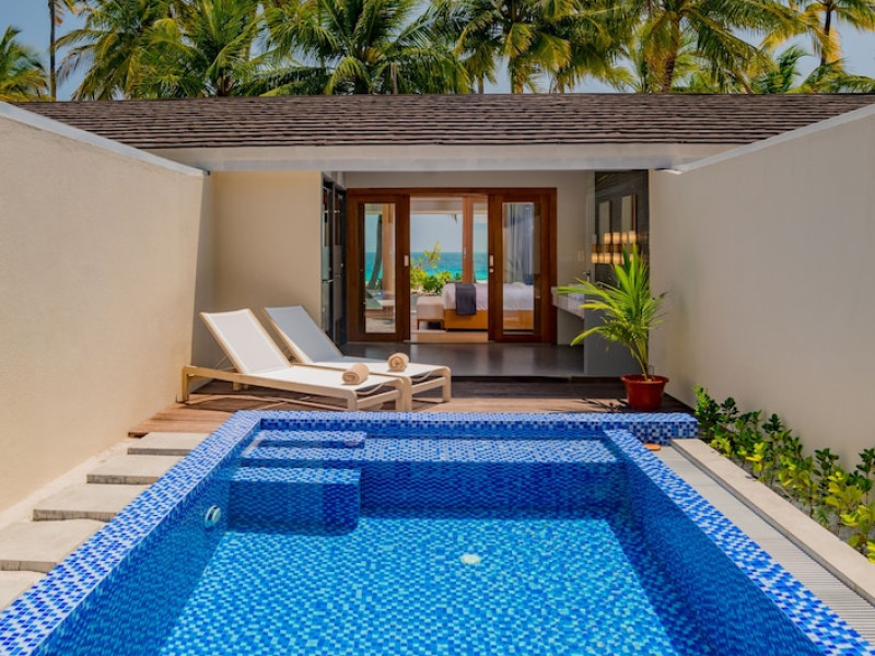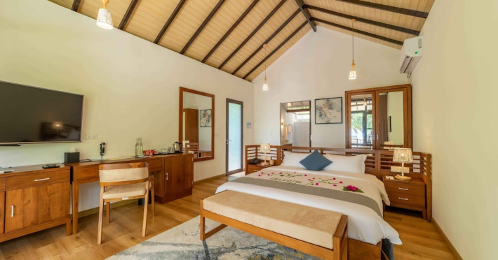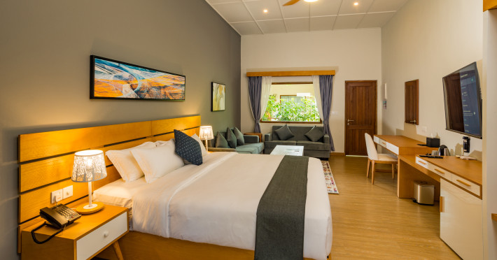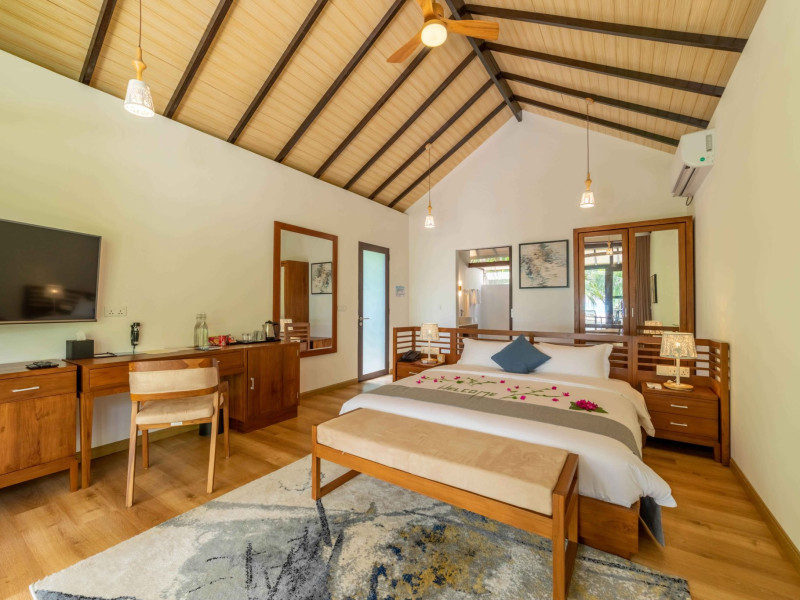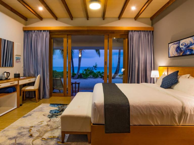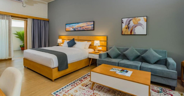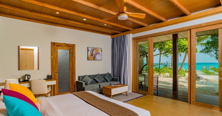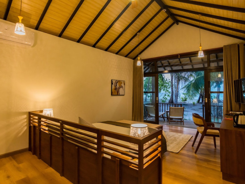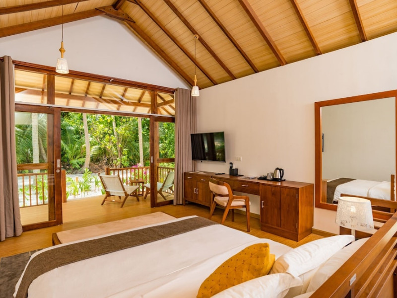 Located on the peaceful, inhabited island of Mandhoo in South Ari Atoll, Fiyavalhu Resort Maldives offers comfortable 4-star beachfront accommodations reflecting the Maldivian lifestyle. The resort is accessible via a 25-minute domestic flight from Velana International Airport, followed by a 30-minute speedboat transfer, approximately 106 km southwest of Malé. Guests can enjoy a private beach area, outdoor swimming pool, fitness centre, garden, shared lounge, and terrace. The resort provides a 24-hour front desk, airport transfers, a kids' club, and complimentary wireless internet access.