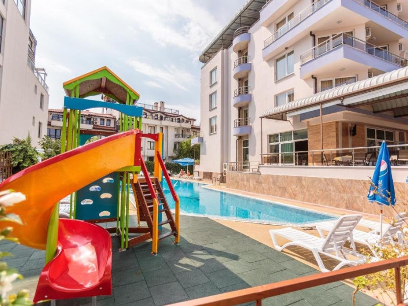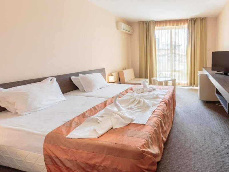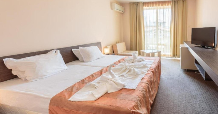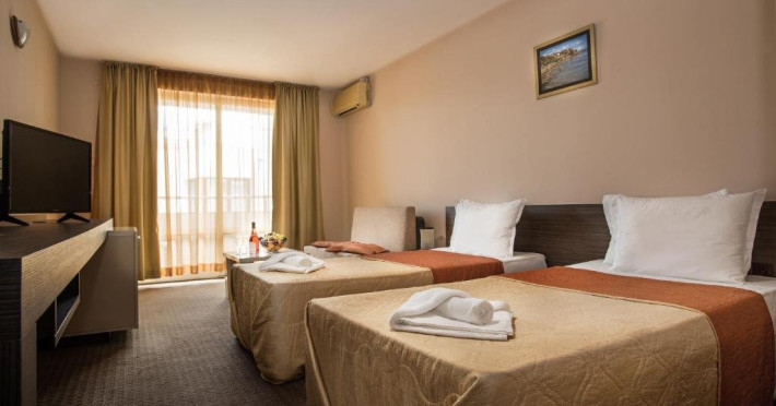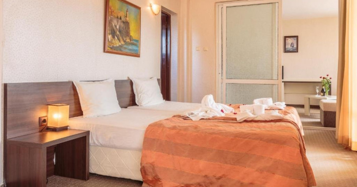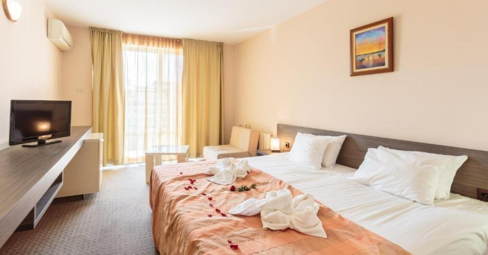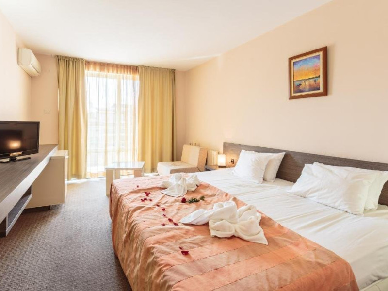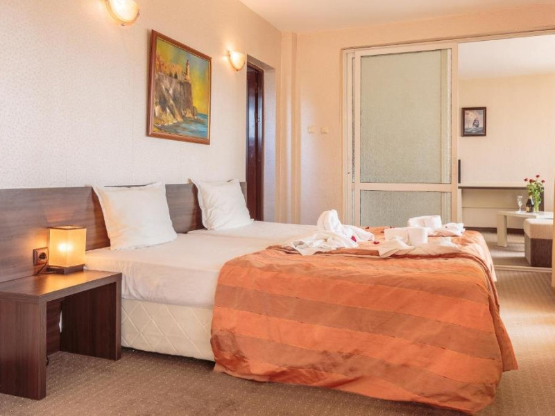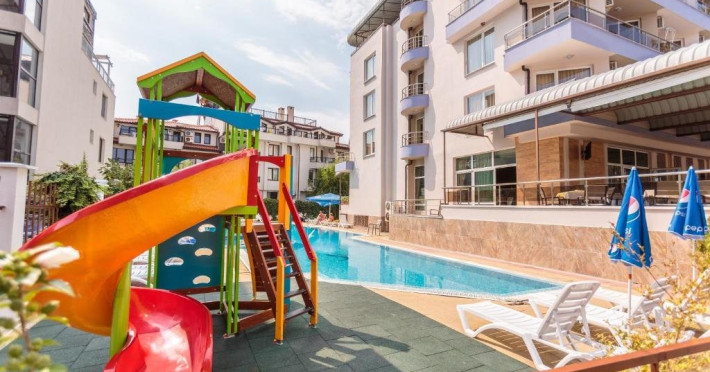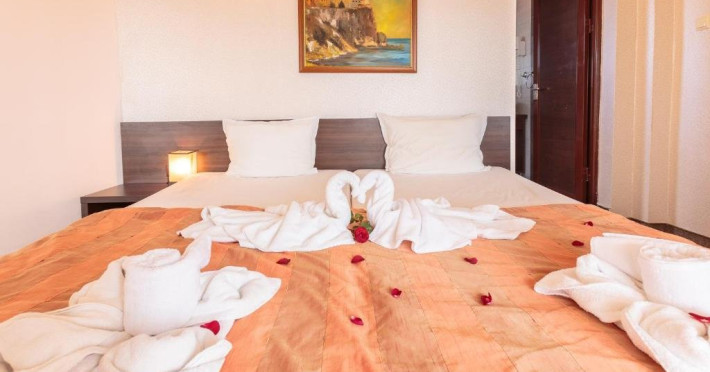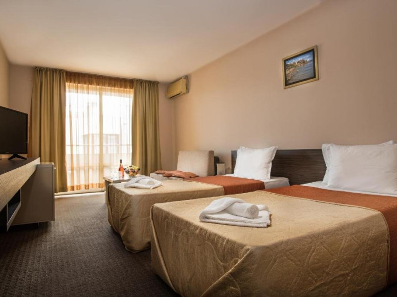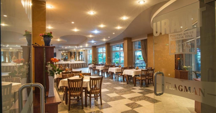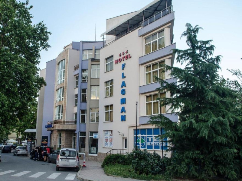 Hotelul Flagman este situat la doar 70 m de coasta marii in orasul Sozopol si la aproximativ 500 m de centrul acestuia. Facilitati Construit in 1997, renovata in 2014, 5 etaje, 1 lift, 56 unitati. Receptie cu seif de inchiriat, Wi-Fi gratuit in zonele publice si in camere, piscina exterioara, Restaurant principal cu terasa deschisa, restaurant a la carte, lobby bar, sala de conferinte (100 locuri), acces pentru persoanele cu handicap la rampa hotelului. Cazare In total 56 de unitati. Camere duble - 25 mp, (max.2+1) paturi twin sau pat matrimonial, canapea extensibila. Studio - 30 mp, (max.2+2/3+0) pat matrimonial, canapea extensibila. Apartament 1 dormitor (max.2+2) - 40-60 mp, un dormitor cu pat matrimonial si un living cu canapea extensibila. Apartament cu 2 dormitoare (max.4+2) - 60-80 mp, 2 dormitoare si living cu canapea extensibila, 2 bai cu dus, uscator de par si prosoape. Toate unitatile au aer conditionat, telefon, TV, minibar, baie cu cabina de dus, uscator de par, prosoape, balcon mobilat, vedere la piscina sau strada. Copii: baby cot (contra cost de 6 bgn pe zi), scaune inalte in restaurant, sectiune pentru copii din piscina exterioara, loc de joaca pentru copii. Sport si divertisment Gratuit: piscina exterioara cu sezlonguri si umbrele de soare, Wi-Fi in zonele publice. Animalele de companie (pana la 10 kg) sunt acceptate cu confirmare prealabila din partea hotelului si cu taxa locala de 10 bgn pe zi. Parcare Parcare disponibila langa hotel la un cost suplimentar - 12 leva/zi.