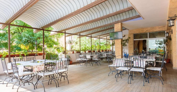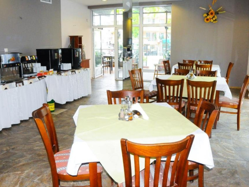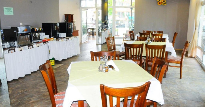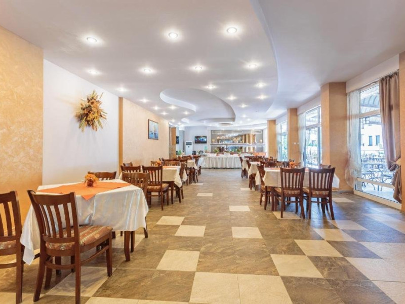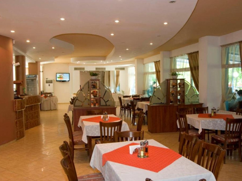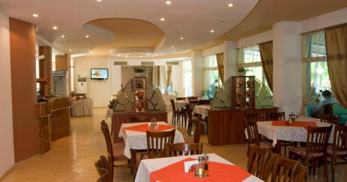 Restaurantul principal: Mic dejun / bufet - 08.00-10.00 Pranz / bufet - 12.00-14.00 Cina / Bufet - 18.00-20.00 Gama larga de produse lactate, carnati, preparate cu oua, legume, supe, preparate din carne si vegetariene, salate, sosuri, paine si brutarie, deserturi, fructe. Bauturi oferite la micul dejun: apa minerala, bauturi calde (ceai, cafea, cacao, lapte), bauturi racoritoare. Bauturi oferite la pranz si cina: apa minerala, bauturi calde (ceai, cafea, cacao, lapte), bauturi racoritoare, bere la halba, vin brosat, alcool local.