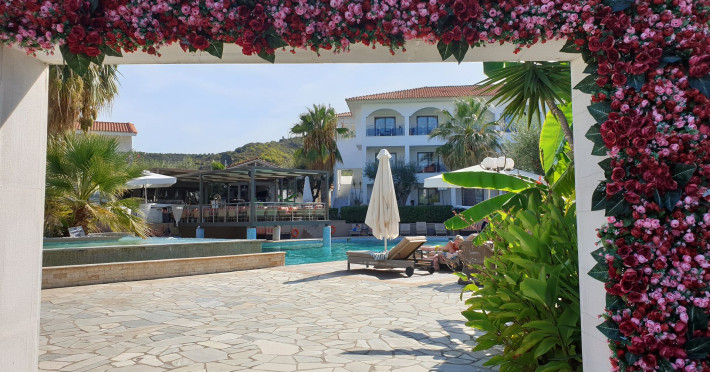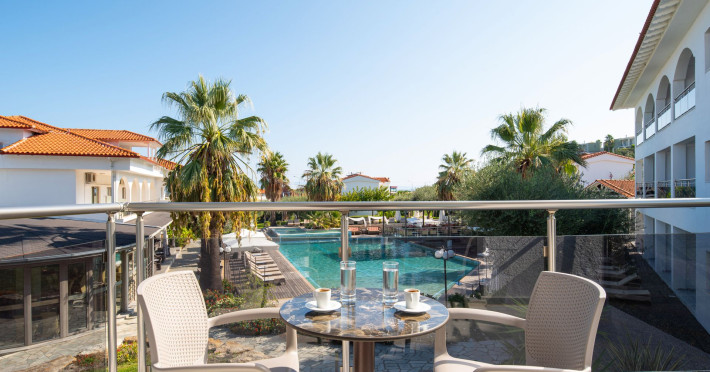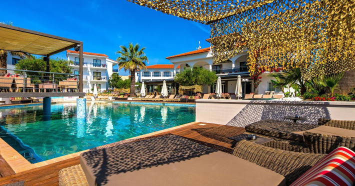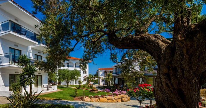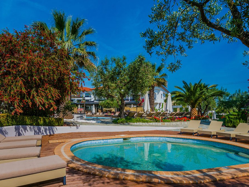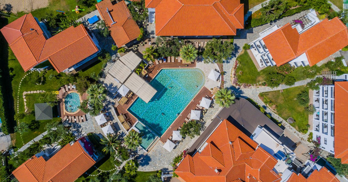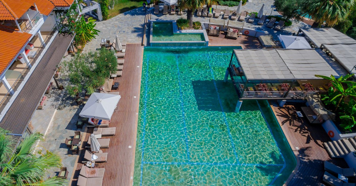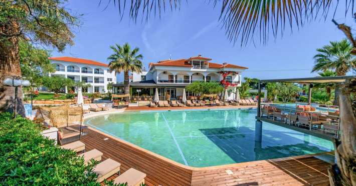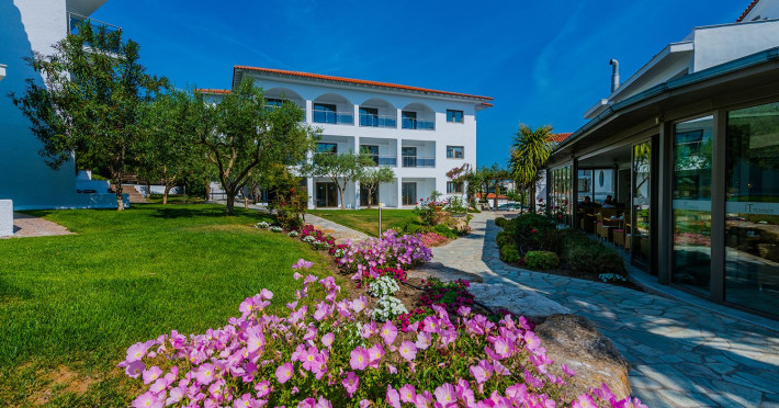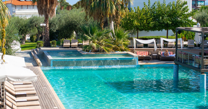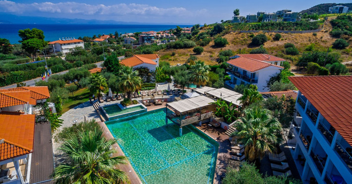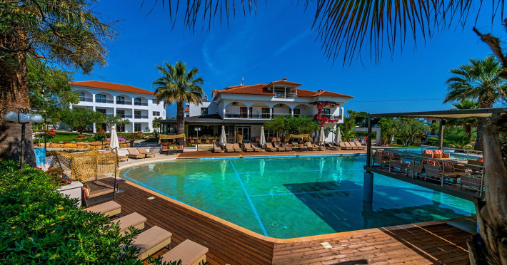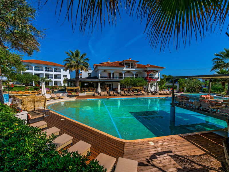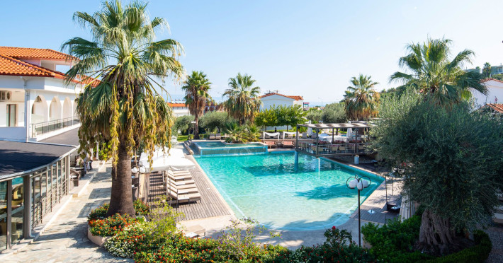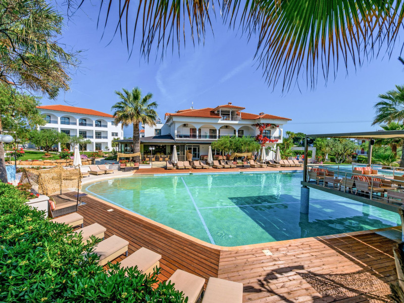 The 4* Flegra Palace is located close to Pefkochori village, one of the most cosmopolitan places in Kassandra, the first peninsula of Halkidiki.