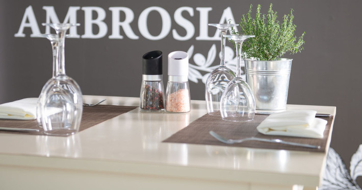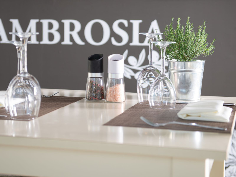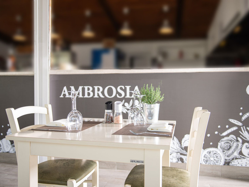 • ''Ambrosia'' : an overlooking to the pool ‘a la carte’ restaurant where you can taste our wonderful dishes inspired by the Mediterranean Greek diet