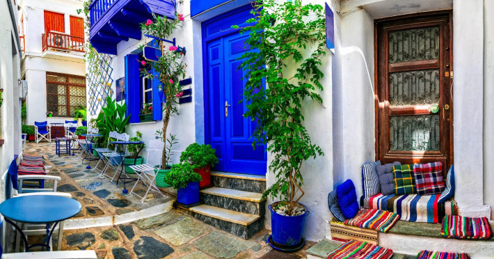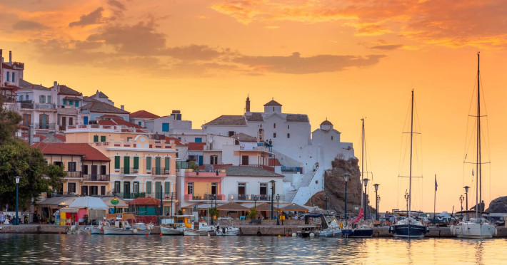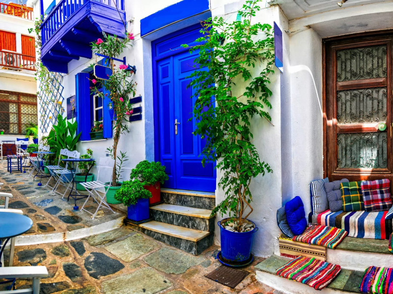 The elegant Flisvos Beachfront Apartments underwent a complete renovation (2023) and are found situated in the charming and picturesque fishing village of Loutraki Glossa, are above the homonym Flisvos seafood tavern, nestled in the idyllic Skopelos island.