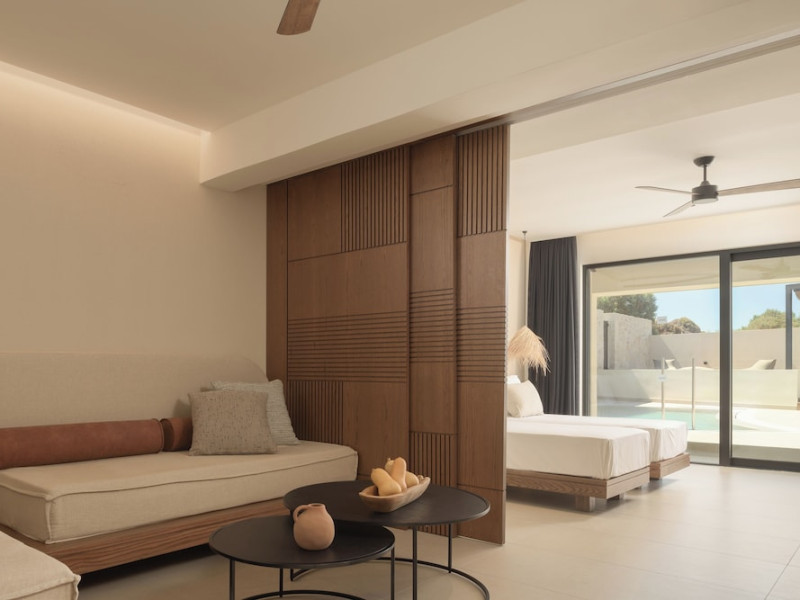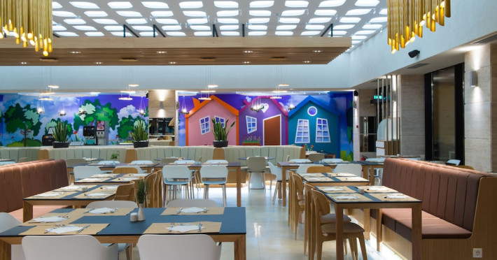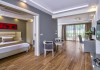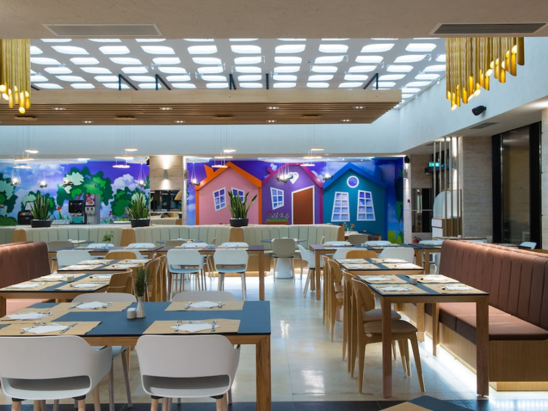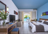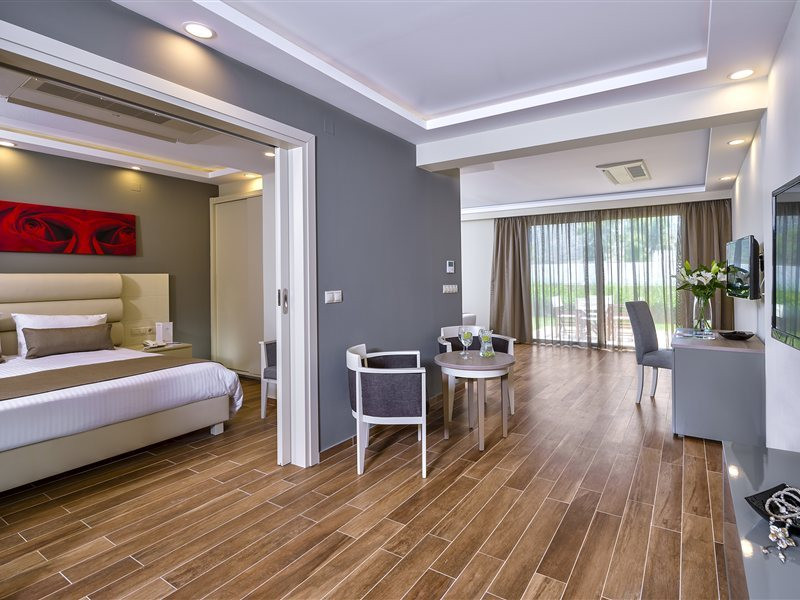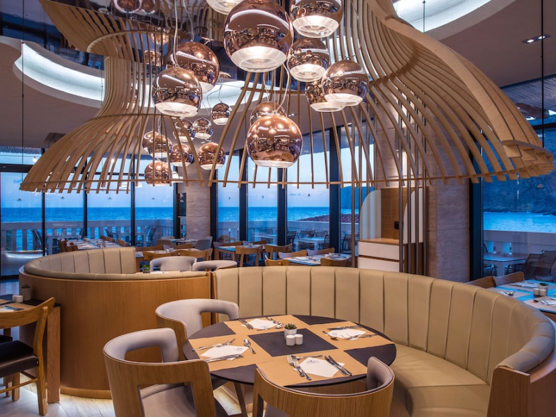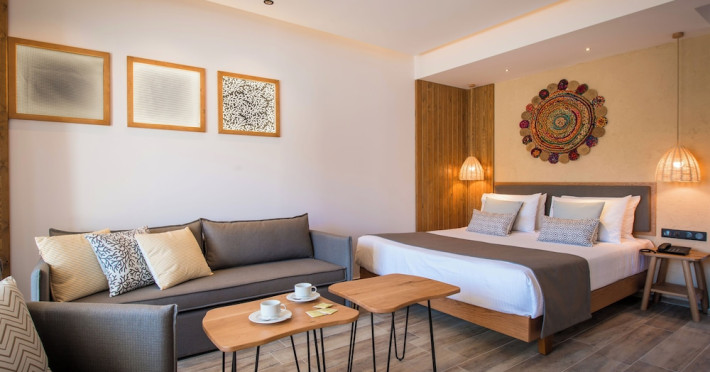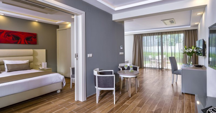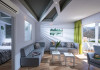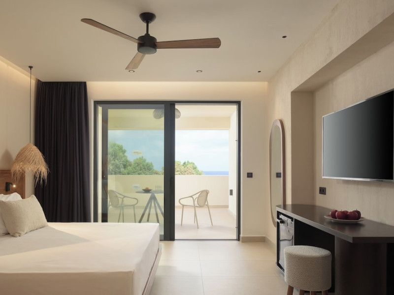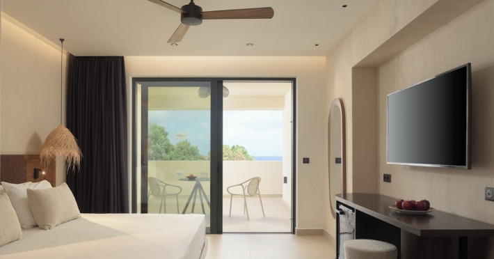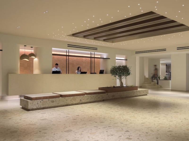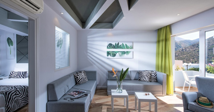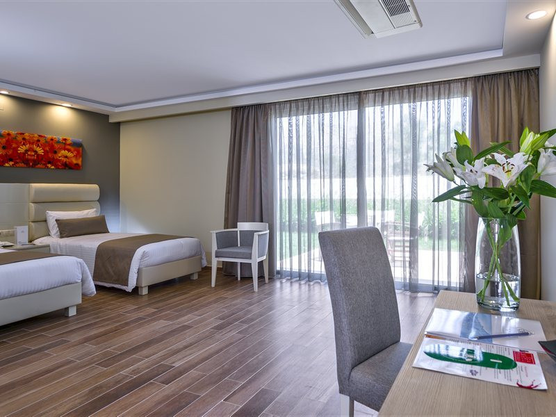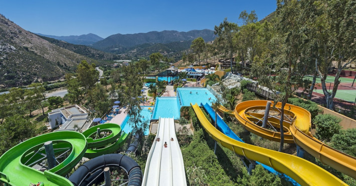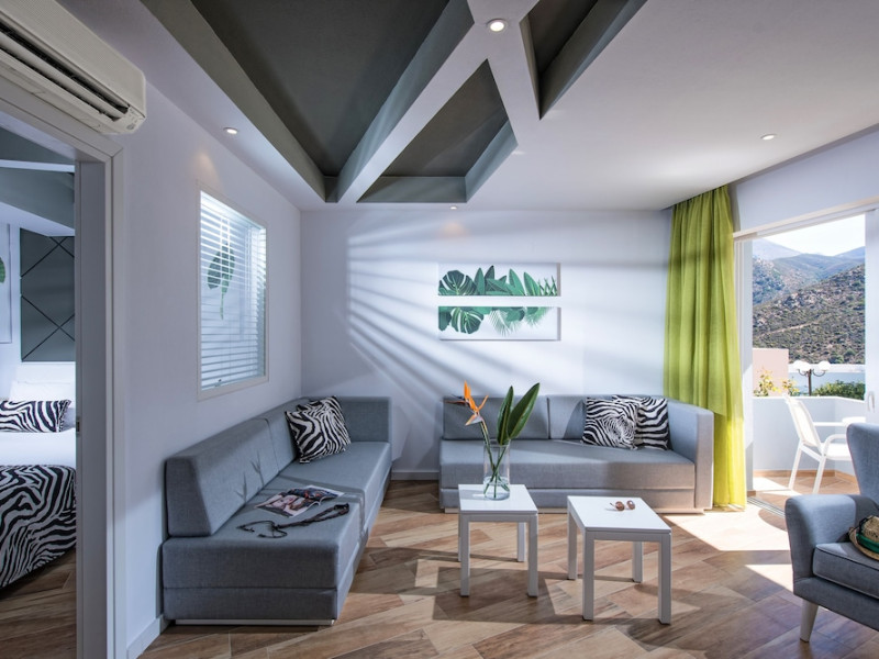 Facilities and services include a lobby with lounges, several terraces with sea view, three swimming pools, one of which is heated during the low season, two separate children’s pools, sun terrace with sun beds and parasols, pool bar, snack bar, lounge bar, beach bar, restaurants, tennis courts, gym, mini golf, billiards, games room, basketball court, congress hall, beach towels, playground and children’s club. A small shopping centre and hair dresser are also available in the hotel area.Guest rooms are equipped with air conditioning, bathroom with hair dryer, satellite TV, radio, safe (with charge), telephone, fridge and balcony or terrace.Please note:Any problems, complaints or issues which have not been communicated to the representatives of the Hotel or the T.O during the stay will not be acknowledged after guests’ departure.Pets are not allowed.The DBL GV & SV rooms have showers onlyWi- Fi is free of charge all over the hotel, but an extra charge with high speed.** Please note that some of the above facilities may be closed due to weather / seasonal conditions. The All Inclusive-concept includes all meals (breakfast, lunch, dinner and snacks) and mealtime drinks such as soft drinks, beer, wine, water and alcoholic drinks, all of local brands. Drinks are served from morning until late evening (approx until 22.-24.00 hrs). Opening times vary between different hotels. In certain hotels the activities program is also included.Address: Fodele 71500, Crete, Greece