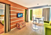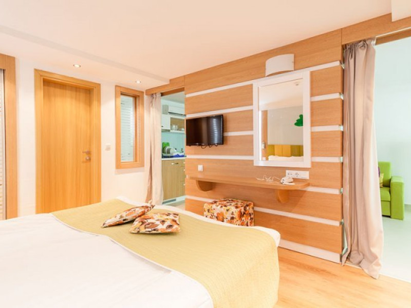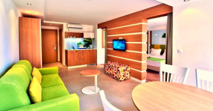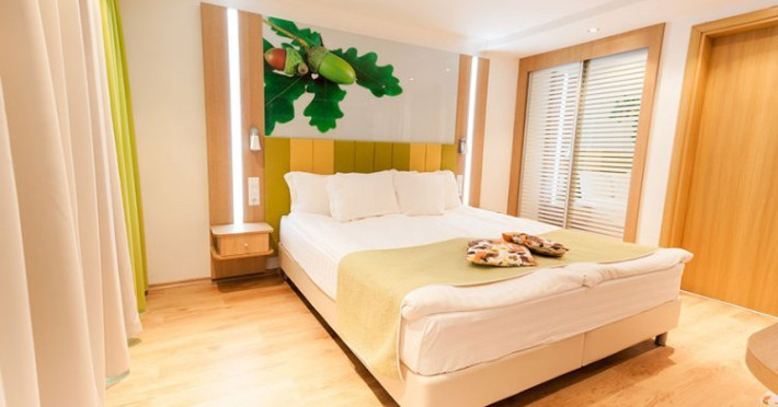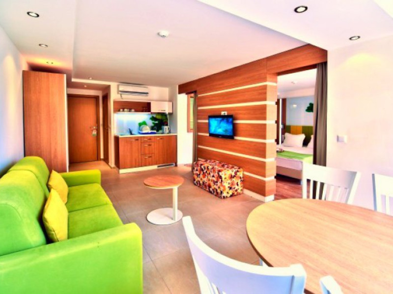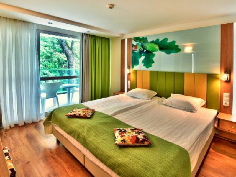 Hotel Forest Beach este situat in centrul statiunii Forest Beach Natural Holiday Resort, dar si departe de traficul zgomotos - chiar acolo, acolo unde padurea se intalneste cu paradisul verde-mare, care se afla la doar 150 de metri de plaja. Hotel Forest Beach ofera 179 de studiouri spatioase si 24 de camere duble confortabile. Facilitati Hotelul a fost renovat in 2015, 2018 si la inceputul anului 2019. Hotel Forest Beach este o combinatie intre confortul unitatilor de cazare de 4 stele si oportunitatea de relaxare adevarata in inima padurilor seculare de stejar din Muntele Strandzha. Hotel Forest beach este un grup de cladiri joase situate in inima padurii si impartite in 5 sectoare. Coridoarele exterioare leaga camerele din toate sectoarele si fiecare sector are scari deschise cu lifturi care ofera vederi frumoase asupra padurii. Hotelul este accesibil persoanelor cu handicap. Hotelul dispune de restaurant Forest Beach - All Inclusive, birou de excursii, magazin alimentar, sali de conferinte, facilitati sportive, lounge cu canapele, potrivit pentru relaxare si jocuri de societate. Cazare Ora de check-in dupa ora 14:00; Ora de check-out inainte de ora 11:00 Camera dubla: Camerele elegante si decorate in culori proaspete sunt locul ideal pentru a va relaxa singur sau cu inca o persoana. Cu un pat mare, confortabil de 200*200 cm, cu o saltea de 20 cm, TV LED, telefon, seif, aer conditionat si Wi-Fi au tot ce este necesar pentru confortul tau. Studio standard - sector A,B,C Cu culorile sale deschise si detaliile proaspete, studiourile standard ale hotelului Forest Beach sunt ideale pentru familii. Sunt situate in sectorul A, B, C. Patul dublu de 200x200 cm cu o saltea confortabila de 20 cm in partea de dormitor va va face sa va scufundati intr-o relaxare deplina. In sufragerie veti gasi o canapea extensibila confortabila unde se pot odihni si copiii mai mari, un televizor LED si o chicineta cu tot ce aveti nevoie pentru a pregati o bautura calda sau mancare pentru copilul dumneavoastra: ceainic, frigider, plite, aspiratie, vesela. si o chiuveta. Toate camerele sunt dotate cu aer conditionat. Studio deluxe - sector D, E, a fost renovat in 2019 Garsonierele sunt complet renovate in 2018 si 2019 potrivite pentru familii de 3-4 membri. Garsonierele sunt situate in sectorul D si sectorul E. Cu culorile sale deschise si detaliile proaspete, garsonierele hotelului Forest Beach sunt ideale pentru familii. Patul dublu de 200x200 cm cu o saltea confortabila de 25 cm in partea de dormitor va va face sa va scufundati intr-o relaxare deplina. In living vei gasi o canapea extensibila confortabila cu o saltea confortabila de 10 cm, 140x190 cm, unde se pot odihni si copiii mai mari, un televizor LED si o chicineta cu tot ce ai nevoie pentru a pregati o bautura calda sau mancare pentru copilul tau: ceainic, frigider, plite, aspiratie, tacamuri si chiuveta. Toate camerele sunt dotate cu aer conditionat. Studio Economy Cu culorile sale deschise si detaliile proaspete, studiourile-economie ale hotelului Forest Beach sunt ideale pentru familii. Sunt situate in sectorul A, B, C la etajul I. Patul dublu de 200x200 cm cu o saltea confortabila de 20 cm in partea de dormitor va va face sa va scufundati intr-o relaxare deplina. In sufragerie veti gasi o canapea extensibila confortabila unde se pot odihni si copiii mai mari, un televizor LED si o chicineta cu tot ce aveti nevoie pentru a pregati o bautura calda sau mancare pentru copilul dumneavoastra: ceainic, frigider, plite, aspiratie, vesela. si o chiuveta. Toate camerele sunt dotate cu aer conditionat. Apartament cu doua camere Apartamentele mari, decorate in culori proaspete, sunt alegerea ideala pentru familiile mai mari. Cele doua dormitoare sunt mobilate cu paturi duble 200x200 cm cu saltele confortabile si te vor face sa te simti pe deplin relaxat. In sufragerie veti gasi o canapea extensibila confortabila unde se pot odihni si copiii mai mari, un televizor LED si o chicineta cu tot ce aveti nevoie pentru a pregati o bautura calda sau mancare pentru copilul dumneavoastra: ceainic, frigider, plite, aspiratie, vesela. si o chiuveta. Pentru siguranta dumneavoastra exista un seif si un telefon. Toate camerele sunt dotate cu aer conditionat. Pentru si mai mult confort, apartamentul dispune de doua bai. Toate tipurile de camere au balcoane sau terase largi care va invita sa zaboviti si ofera o priveliste magnifica asupra parcului natural. Toate tipurile de camere sunt decorate in culori deschise, care creeaza o atmosfera confortabila si dragalasa. Interiorul este elegant si modern si ofera oaspetilor cele mai bune conditii de relaxare. Hotelul Forest Beach ofera baby cot gratuit, la cerere. Chicineta este dotata cu ceainic electric, frigider, plita, aspiratie, vase si accesorii si chiuveta, facandu-l locul perfect pentru a pregati o bautura calda sau mancare pentru copii. Chicineta in plan deschis va ofera posibilitatea de a va bucura de emisiunea preferata pe unul dintre cele doua televizoare LED. Livingul spatios cu zona de luat masa are propriul televizor LED si este mobilat elegant, cu o canapea frantuzeasca confortabila cu o saltea de 10 cm grosime, care va intampina pentru o odihna de dupa-amiaza sau pentru a citi o carte. Toate garsonierele sunt dotate cu o toaleta in holul de la intrare si o baie cu toaleta Copii: zona de piscina pentru copii, animatie pentru copii, club pentru copii, loc de joaca pentru copii Sport si divertisment: Gratuit: loc de joaca pentru copii, volei pe plaja, fotbal, alte activitati sportive si jocuri linistite pentru tineri si batrani, folosirea gratuita a unui fotbal, baschet, volei, petanque, teren de handbal, tenis de masa pentru toate varstele, sah, table, sageti, tir cu arcul si o pista de alergare, teren de sport nou polivalent pentru baschet si volei, (realizat cu acoperire poliuretanica de catre firma elvetiana CONICA. Terenul de fotbal are 17/35 metri si acoperit cu iarba artificiala italiana LIMONTA cu o inaltime de 4 c