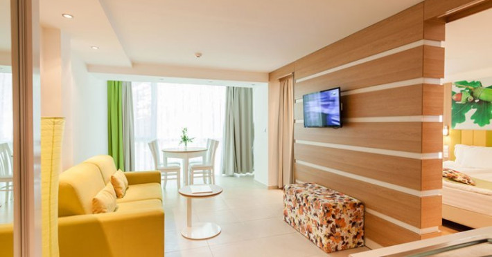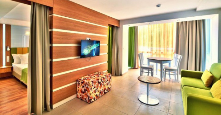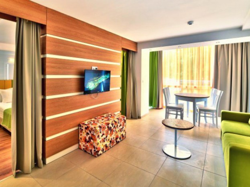 Sport si divertisment: Umbrela si 2 sezlonguri gratuite intr-o zona separata de pe PLAJA Utilizarea gratuita a piscinelor din complex Umbrele si sezlonguri gratuite in jurul piscinei (in functie de disponibilitate) Program de animatie de sase zile si seara pentru adolescenti si adulti pe noua scena de animatie din fata restaurantului, volei pe plaja, teren de fotbal polivalent cu gazon artificial, volei si baschet cu pardoseala din poliuretan moale, tir cu arcul, fitness in aer liber si alte activitati sportive . Wi-Fi gratuit in zonele publice Tenis de masa, badminton, sah si table gratuite