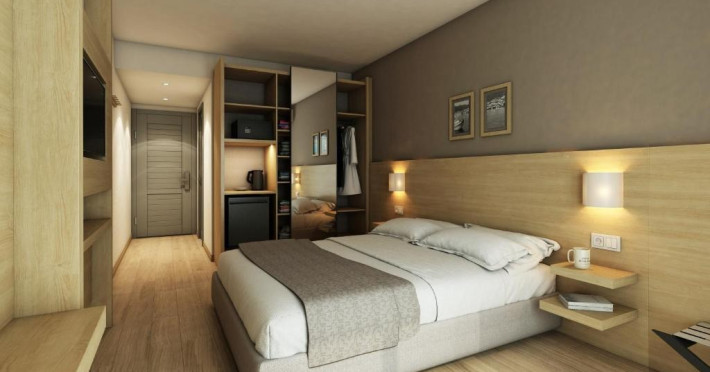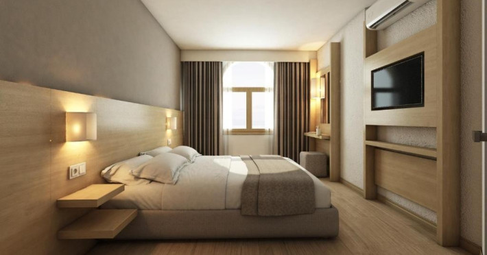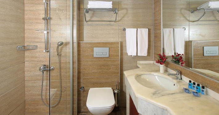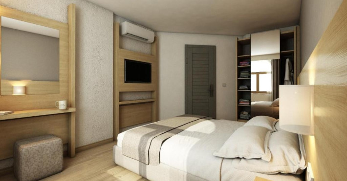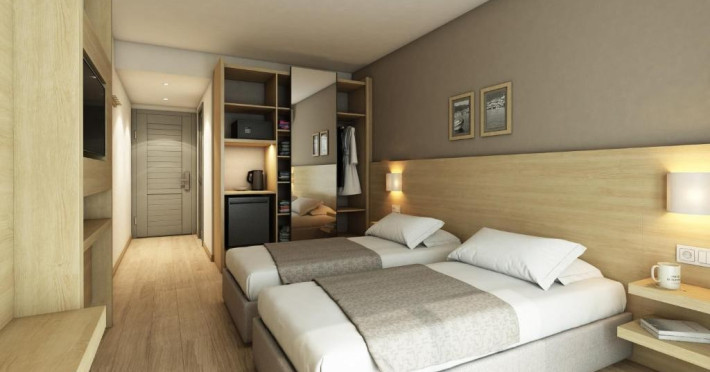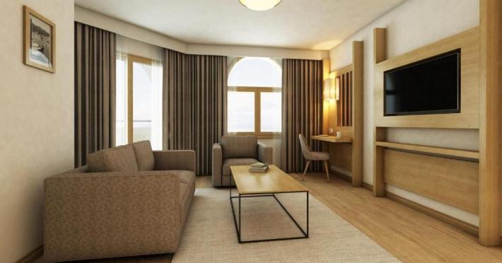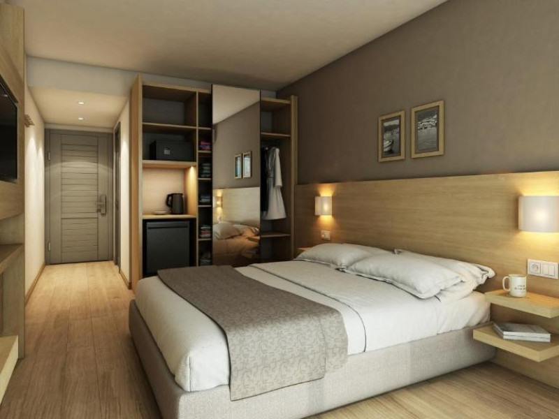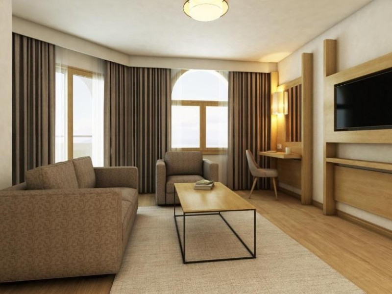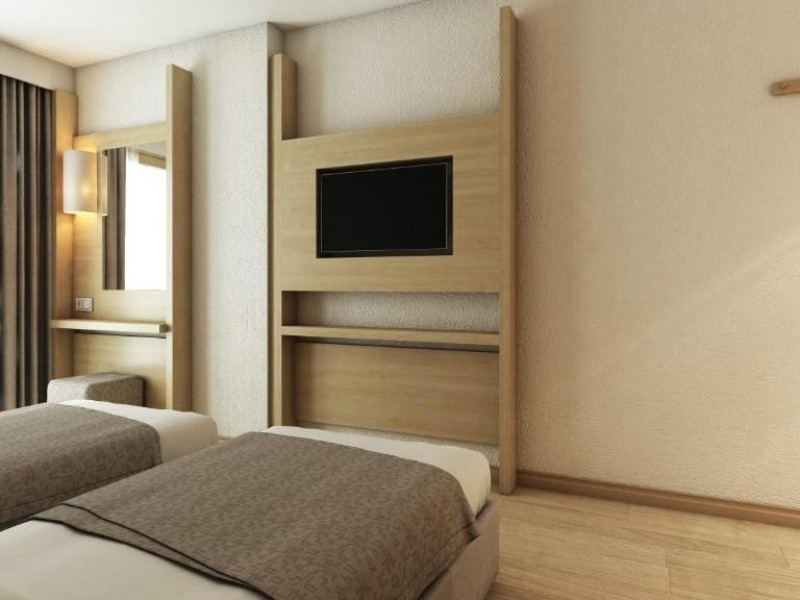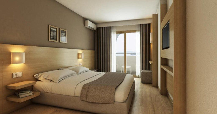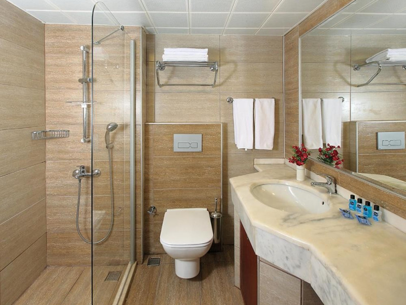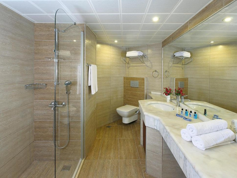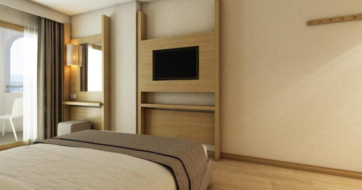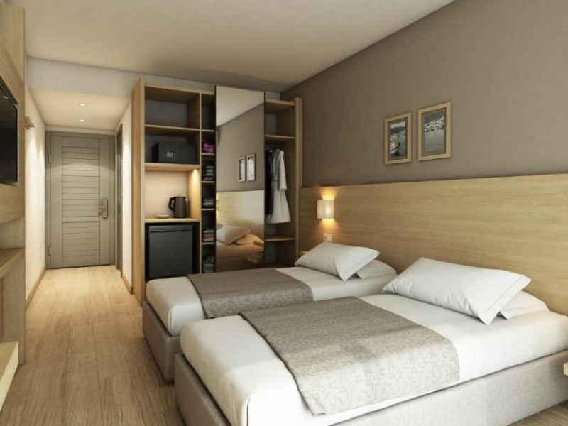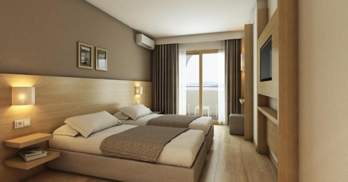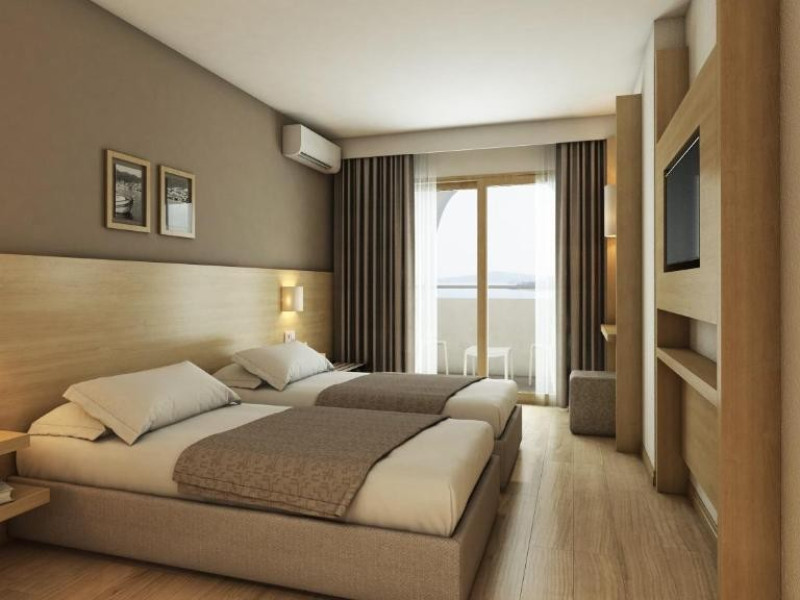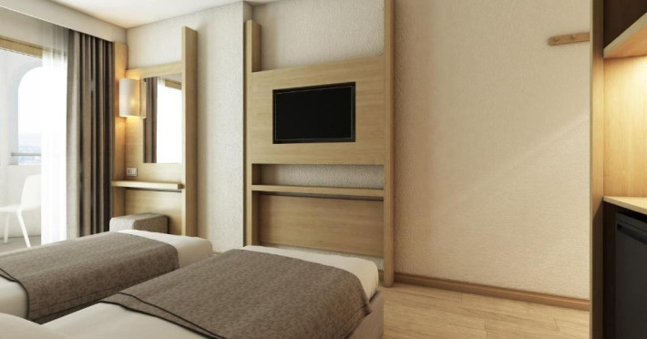 Camera dubla, vedere laterala la mare: baie/WC (uscator de par), aer conditionat, wifi (gratuit), TV, telefon, minibar (umplut cu apa la sosire), seif (gratuit), aparat pentru preparare ceai / cafea, balcon sau terasa.