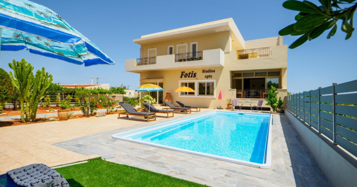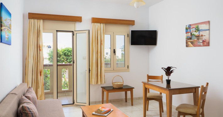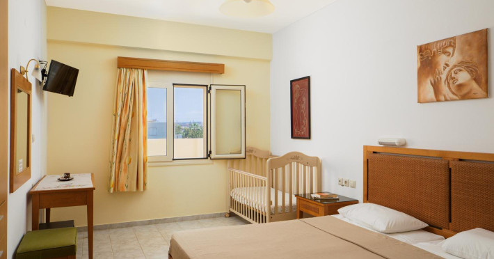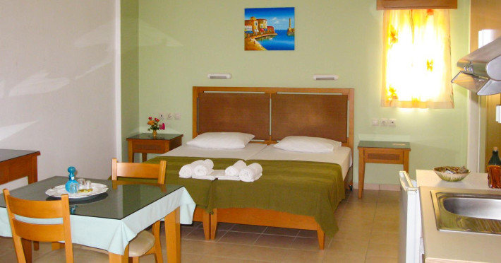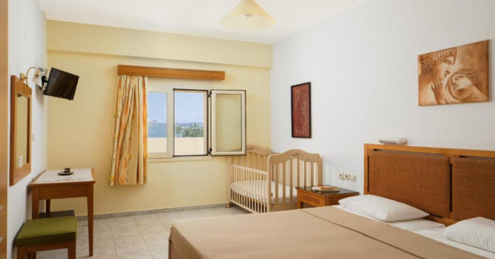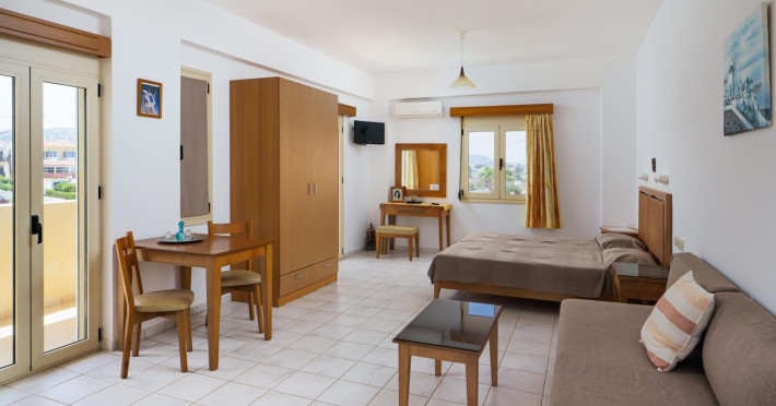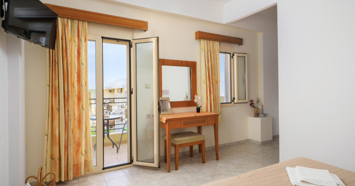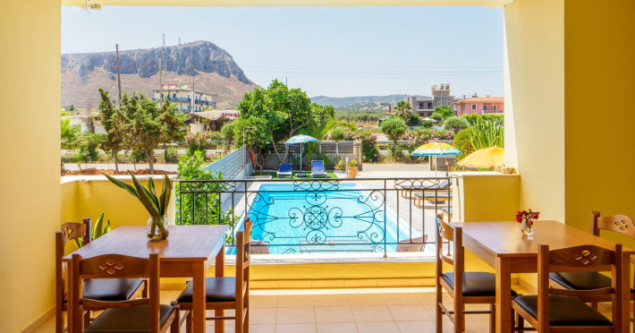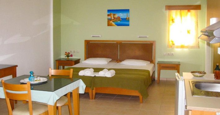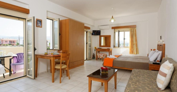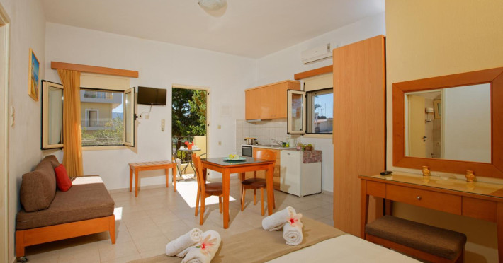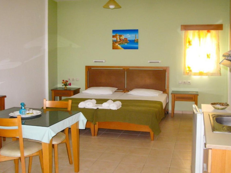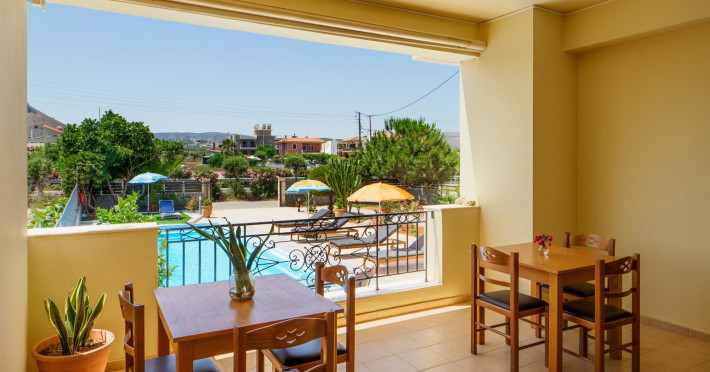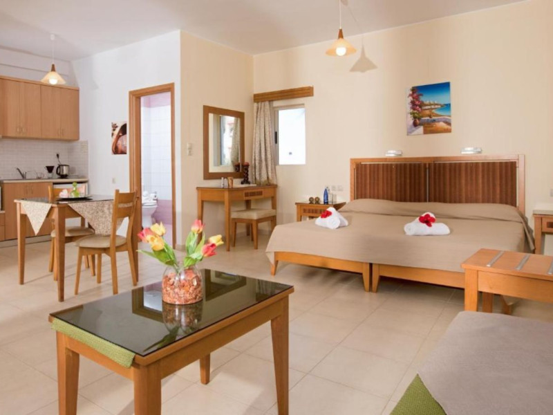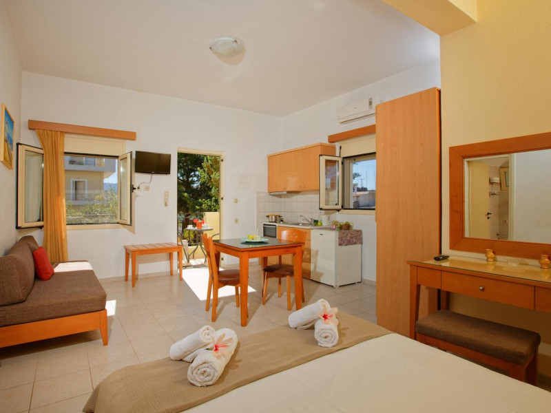 Facilities and services include air conditioning, wireless internet access, balcony, free parking, outdoor pool, and a garden.Room features air conditioning, balcony, desk, kitchenette, tea/coffee maker, cable/satellite television, and a private bathroom.Address: Gouves, Crete, 70014, Greece