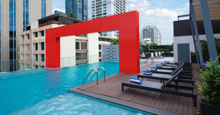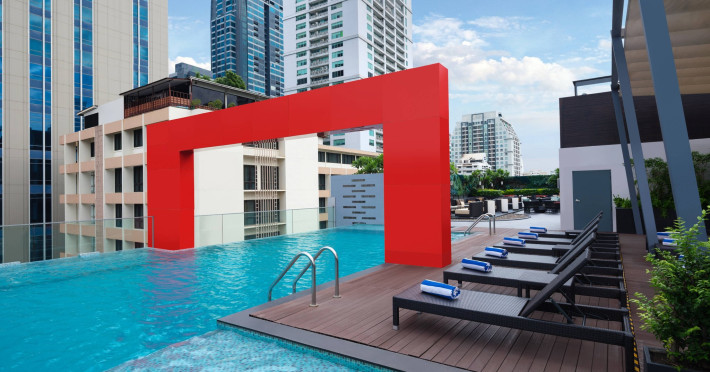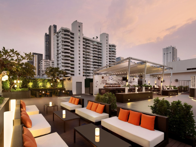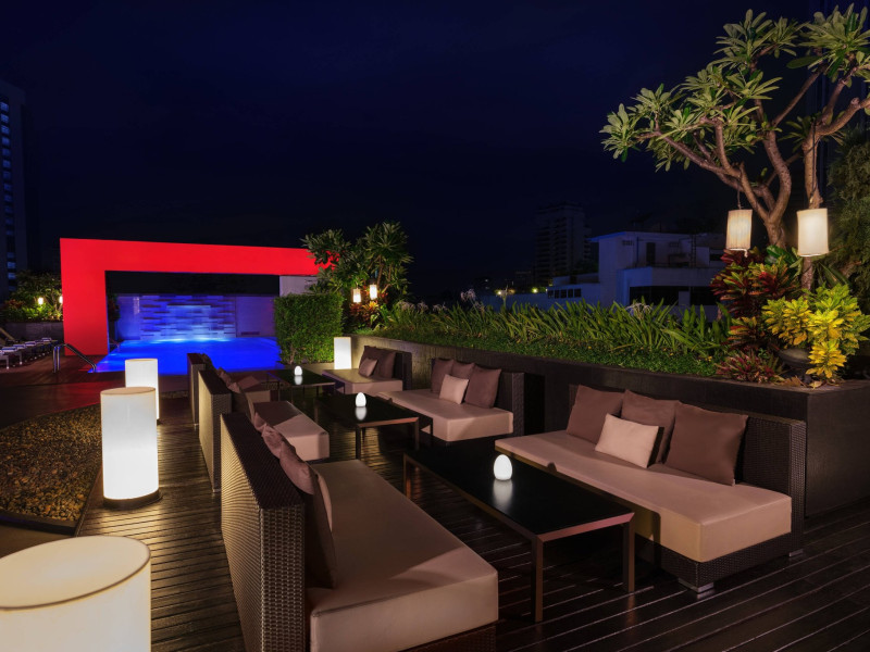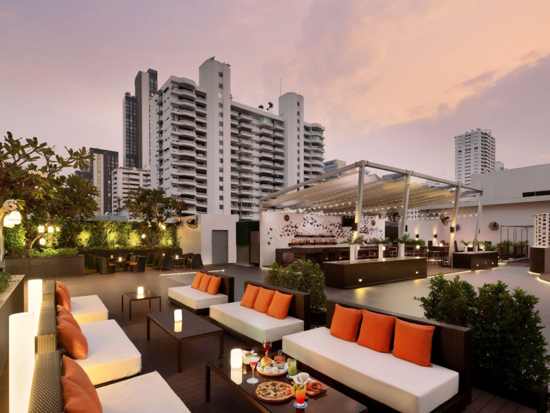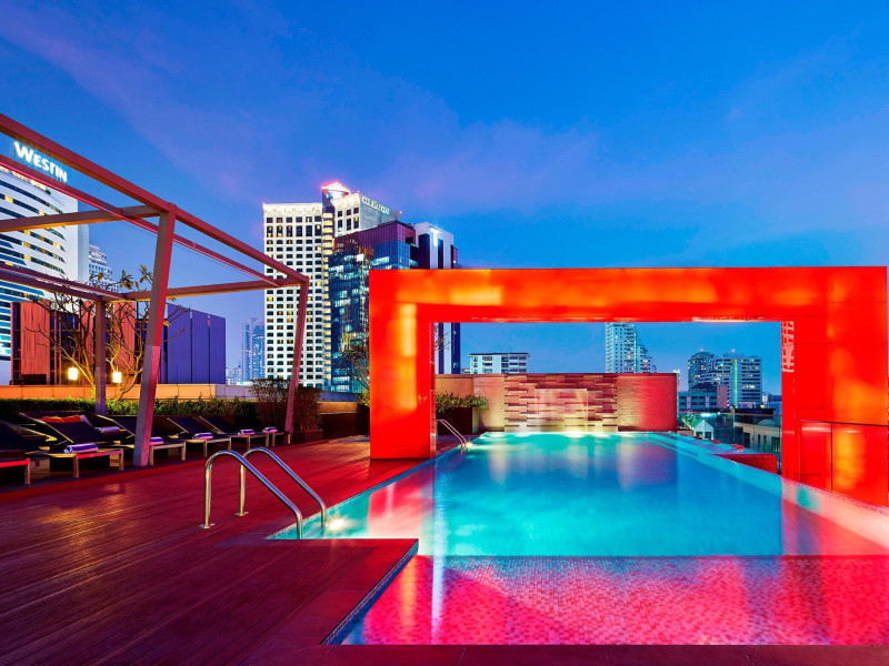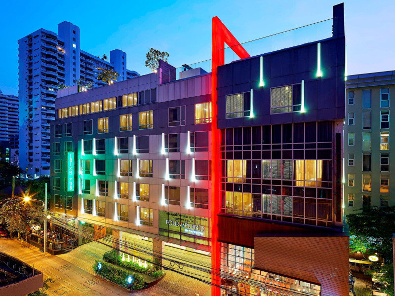 Streamline travel with a stay at Four Points by Sheraton Bangkok, Sukhumvit 15. Our hotel near Sukhumvit Road, Bangkok sits in the city center near the retail and dining options at Terminal 21 and EmSphere. Travel throughout Bangkok with ease using the nearby BTS Skytrain. Relax in a spacious room or suite filled with modern amenities, including Four Points Four Comfort Beds, separate showers and tubs, floor-to-ceiling windows, large workspaces, and free Wi-Fi. Upgrade to a terrace suite in our hotel in Bangkok, Sukhumvit, for a fully furnished outdoor space with city views. Stay fit in our rooftop pool or 24-hour hotel gym before a meal in one of our tempting dining options, including our rooftop bar. If you're planning an event in Bangkok, Thailand, we offer elegant meeting venues with private courtyards paired with expert planning and catering services. Join us soon at Four Points by Sheraton Bangkok, Sukhumvit 15.