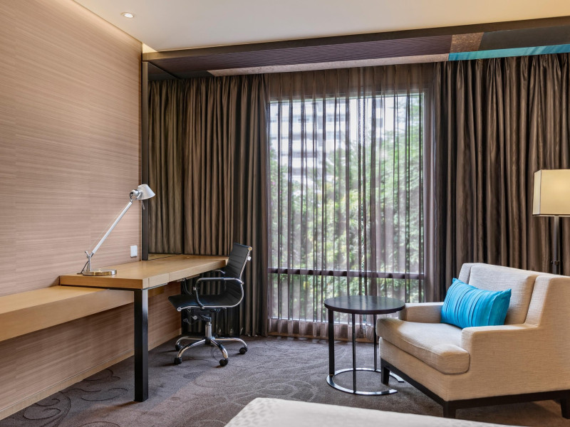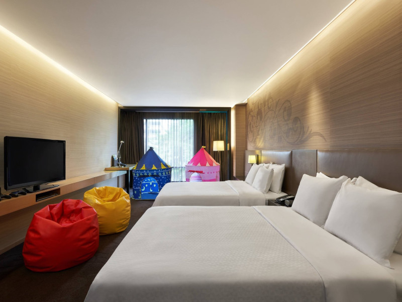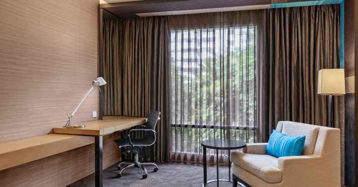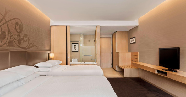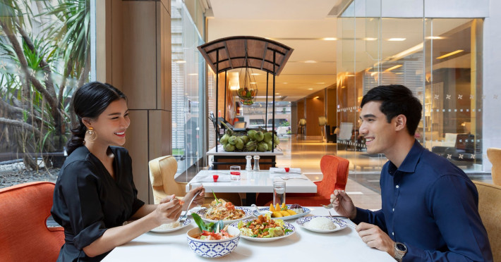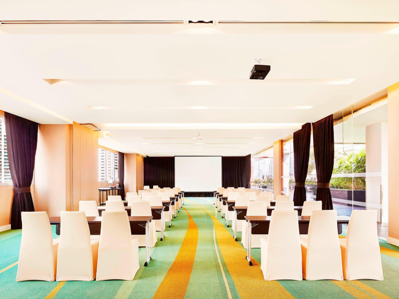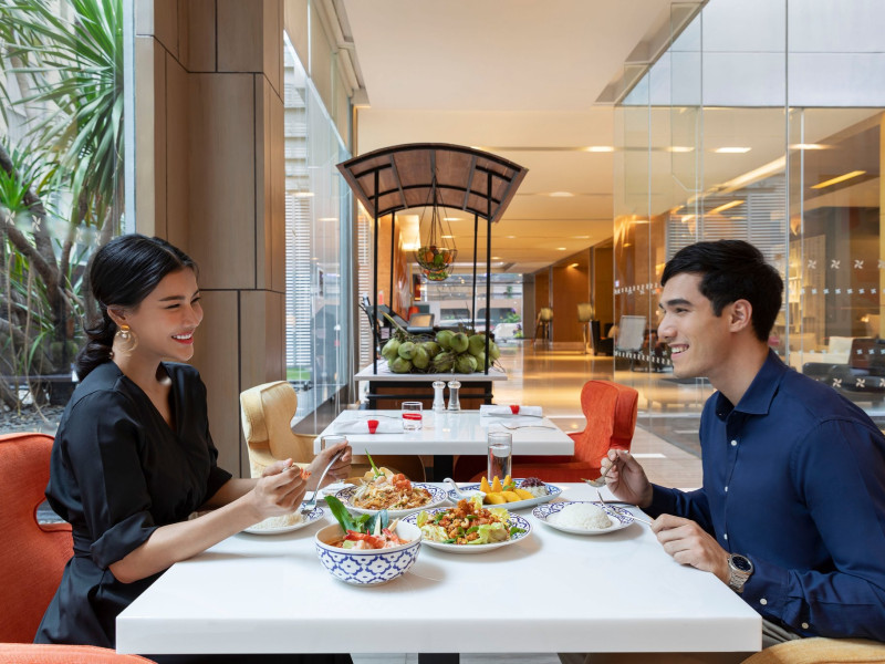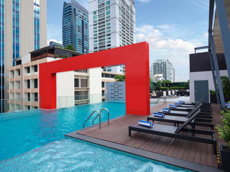 Streamline travel with a stay at Four Points by Sheraton Bangkok, Sukhumvit 15. Our hotel near Sukhumvit Road, Bangkok sits in the city center near the retail and dining options at Terminal 21 and EmSphere. Travel throughout Bangkok with ease using the nearby BTS Skytrain. Relax in a spacious room or suite filled with modern amenities, including Four Points Four Comfort Beds, separate showers and tubs, floor-to-ceiling windows, large workspaces, and free Wi-Fi. Upgrade to a terrace suite in our hotel in Bangkok, Sukhumvit, for a fully furnished outdoor space with city views. Stay fit in our rooftop pool or 24-hour hotel gym before a meal in one of our tempting dining options, including our rooftop bar. If you're planning an event in Bangkok, Thailand, we offer elegant meeting venues with private courtyards paired with expert planning and catering services. Join us soon at Four Points by Sheraton Bangkok, Sukhumvit 15.