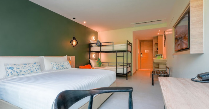 Located on the hill leading to Patong, Fusion Suites Phuket Patong offers modern, air-conditioned rooms and suites with free WiFi in public areas. Rooms feature a flat-screen satellite TV, a seating area, and a minibar. Suites also include a dining area, and some have a spa bath. En suite bathrooms come with a shower, hairdryer, and free toiletries. Guests can enjoy an outdoor pool, adult-only pool, kid's club, spa, and fitness room. The hotel also offers a 24-hour reception, complimentary newspapers in the lobby, concierge services, babysitting (surcharge), and a restaurant serving local and international dishes. Guests can unwind at the bar/lounge or poolside bar. A complimentary shuttle provides access to the beach or shopping. Free private parking is available. The hotel is within a 5-minute drive of Bangla Road and Jungceylon Shopping Center, and Patong Beach is 2.2 km away. Additional amenities include a business center, dry cleaning/laundry services, and daily housekeeping. The Fusion Suites Phuket Patong is a hotel.