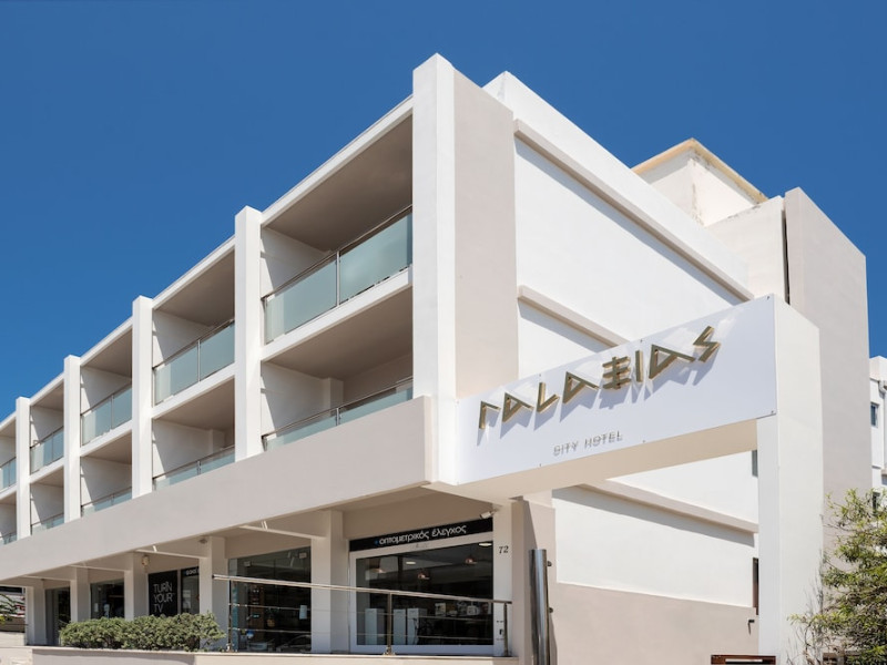 Located in the heart of Rhodes Town, Hotel Galaxias offers accommodations with free WiFi and private balconies overlooking a garden or the street. The air-conditioned rooms are decorated with wooden furnishings and warm colors, featuring a seating area, fridge, satellite TV, and telephone. Guests can enjoy breakfast. Complimentary tea and coffee are available in the reception area. The hotel offers concierge services, a coffee shop/cafe, a bar/lounge, and room service. Wired internet access, a business center, and dry cleaning/laundry services are available. Bicycles are available to rent. Free public parking is possible nearby. The hotel is within walking distance of the Medieval City and the Acropolis of Rhodes, as well as restaurants, cafes, and shops. A bus stop with service to popular beaches is nearby. Diagoras Airport (RHO) is 12.8 km away. The Galaxias City Hotel Rhodes is a hotel.