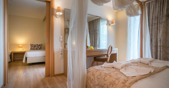The Galaxy Hotel positioned in a idyllic setting at a privileged spot of Laganas beach, is the ideal destination for family holidays in Zakynthos, offering high standards of accomodation with an extensive selection of superior rooms, deluxe family suites and family rooms at the three adjacent building of the complex , exceptional service and a wide range of daily activities.