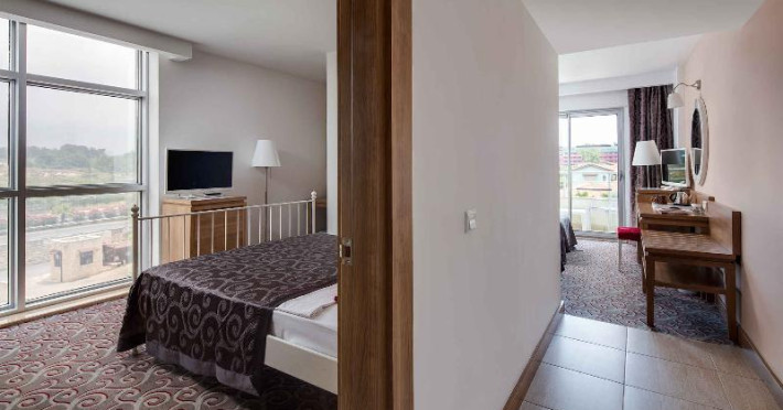 Guests have a choice of 270 rooms, including 8 junior suites, 22 suites and 223 double rooms, located in a 5-storey main building and a 3-storey auxiliary building. Multilingual staff (English, German, French) at the reception are happy to assist guests at the reception desk round the clock. Check-in and check-out are available 24 hours a day. Services such as a baggage storage service, a safe and a currency exchange service ensure a comfortable stay. Wireless internet access allows guests to stay connected while on holiday. The tour desk offers assistance with booking excursions. The resort offers various facilities for guests with disabilities. A lift and wheelchair-accessible facilities are available. A number of shops, including a supermarket, are great for shopping or just browsing. The grounds of the resort feature a playground and a lovely garden. Additional amenities include a newspaper stand, a TV room, a playroom and a library. Guests arriving by car can park their vehicles in the car park. Other services include a childcare service, a car hire service, medical assistance, a transfer service, room service (for a fee), a laundry service, a hairdresser, a coin-operated laundry, a hotel doctor and a hotel shuttle bus. The business centre is on hand for guests business requirements and provides a fax machine.