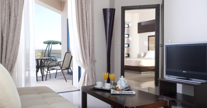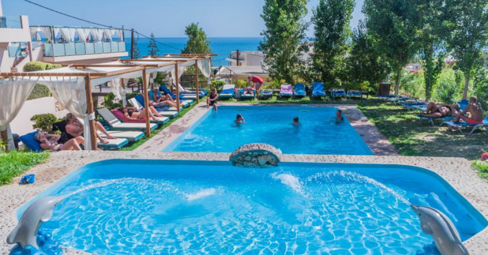 Hotelul Galini, destinat exclusiv adultilor, se află la 150 de metri de plaja cu nisip din localitatea Agia Marina, oferind unităţi de cazare elegante si luxoase.