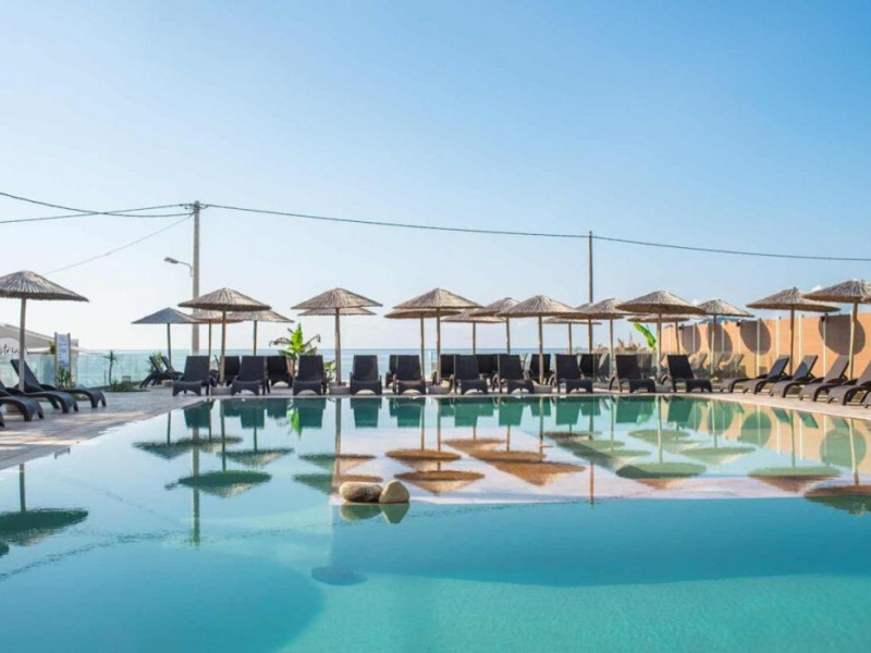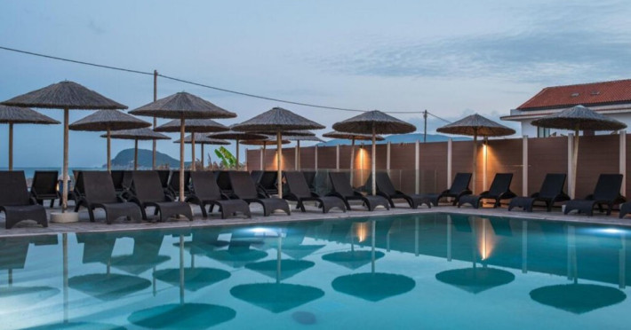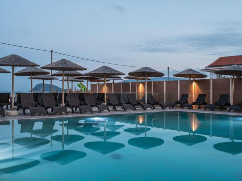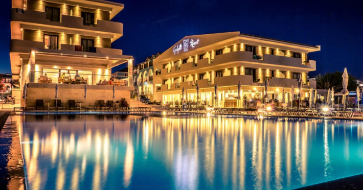 Located on the beach in Laganas, Gardelli Resort offers air-conditioned rooms with a wardrobe, coffee machine, fridge, safety deposit box, flat-screen TV, terrace, and a private bathroom with a shower, some rooms also offer sea views. Complimentary wireless internet access is available throughout the property. Guests can enjoy a seasonal outdoor pool, a communal living room, a restaurant, a coffee shop/cafe, and a bar/lounge, though some facilities are closed seasonally from August 17 to December 31. An all-inclusive option is available, including meals and beverages at onsite dining establishments, with potential charges for certain items. The hotel features a 24-hour front desk, multilingual staff, luggage storage, and free private parking. The hotel is near Laganas Beach and Kalamaki Beach. Zakynthos International Airport is nearby. The Gardelli Resort is a hotel.