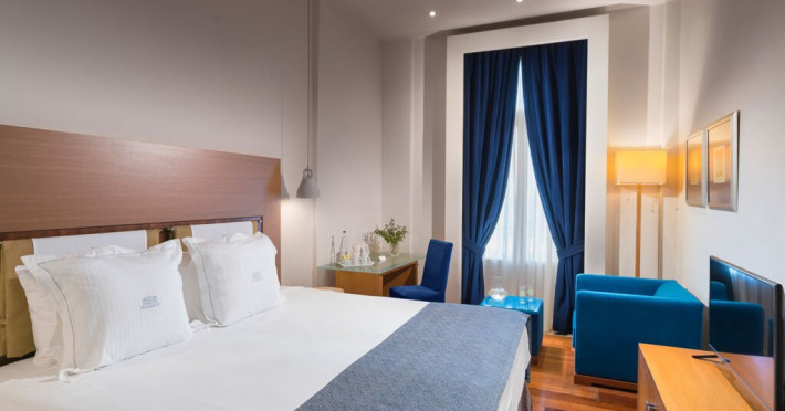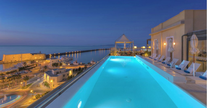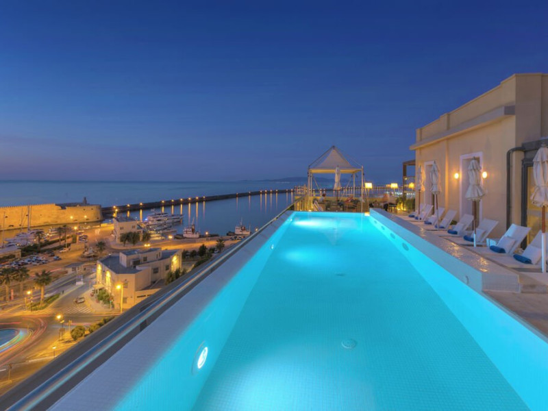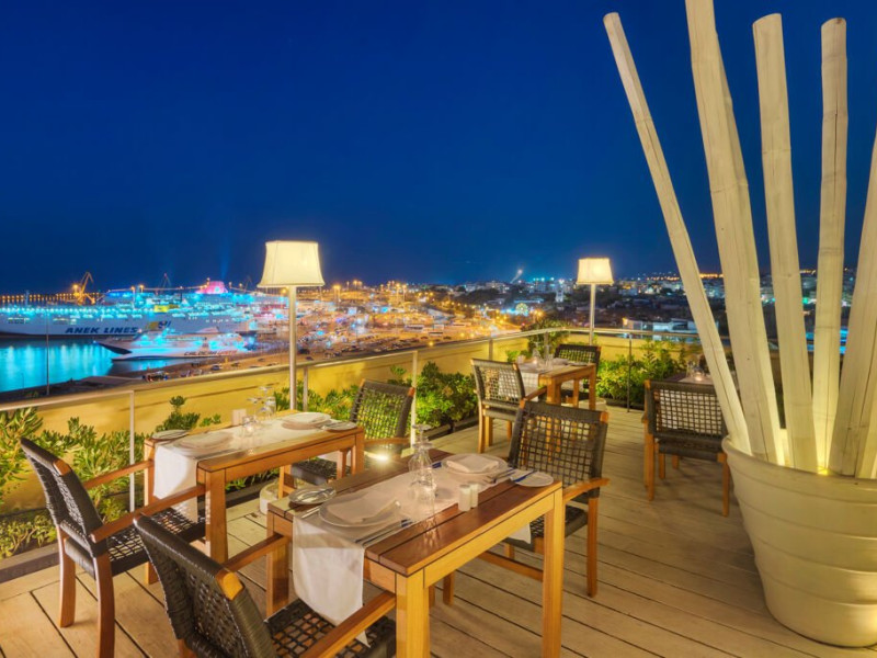 Descriere: Experimenteaza luxul urban la GDM Megaron Historical Monument Hotel, un hotel de 5 stele situat in centrul orasului Heraklion, cu vedere la port si la fortareata venetiana. Camerele si suitele spatioase combina design contemporan, feronerie de calitate si paturi confortabile, oferind panorame catre Marea Egee sau oras. Facilitatile includ piscina pe acoperis (in sezon), fitness, lounge si spa wellness, completand experienta exclusivista. Localizare: Hotelul se afla in centrul orasului Heraklion, la 7 km de plaja si la 4 km de Aeroportul International Heraklion. Dotari camera: Camerele includ aer conditionat central, Wi-Fi gratuit, TV cu canale satelit, minibar, facilitati pentru cafea si ceai, cada sau dus, uscator de par, oglinda cosmetica, halate si papuci, articole de toaleta de lux si balcon. Facilitati hotel: Oaspetii au la dispozitie piscina pe acoperis (mai-octombrie) cu sezlonguri si umbrele, lounge si lobby elegant, fitness, baruri si restaurant tip bufet pentru micul dejun, Wi-Fi gratuit in toate zonele, parcare gratuita si servicii de concierge. Spa-ul ofera masaje, sauna, jacuzzi si hammam contra cost, iar pentru transport exista servicii de limuzina. Site web: https://www.gdmmegaron.com/ Nota informativa: Pentru anumite facilitati din hotel sau din camera, hotelierul poate solicita taxe suplimentare. In momentul sosirii la hotel solicitati receptionerului sa va informeze cu exactitate asupra lor. Taxa turistica obligatorie - se plateste la receptie.