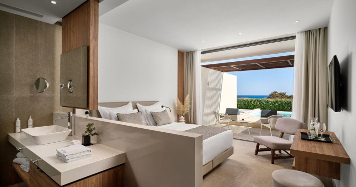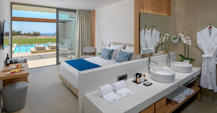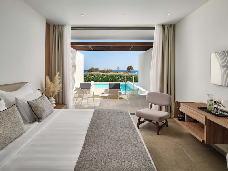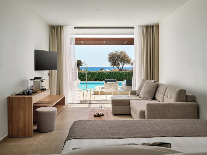 Ideal for swimming and water sports, and in close proximity to the picturesque village of Gennadi, this resort rests on the southeast coast of Rhodes, perfectly positioned between the famed traditional village of Lindos and the southern tip of the island, Prassonissi. Nearby beaches include Gennadi Beach, Lachaniás Beach (4km), and several others within a 13km radius. Diagoras Airport (RHO) is 67 km away. The resort is closed between November 5th and April 15th.Facilities and services include a 24-Hour Reception, E-Concierge Hotel Application, Guest Relations Services, Room Service(extra charge), Laundry & Dry-Cleaning Service(extra charge), Airport Transfers on request(extra charge), Wi-Fi Internet in all Public Areas and at the Beach. Suitable for wheelchair access, parking, Mini market, Boutique Store, Taxi service, Sailing Excursions(extra charge), Babysitting services(extra charge), Doctor on call 24hrs(extra charge), Car Hire Office. Spa, 4 outdoor swimming pools & 1 indoor heated pool, Restaurant and bar. Rooms feature a Open plan bathroom with walk-in shower, Individually controlled Air-conditioning, Full range of Korres branded toiletries, Quality Bathrobes & Slippers, Flat screen LCD TV 43’’, Hair dryer, Safe, Wi-Fi, In-room Welcome offer, Daily refill of Nespresso Coffee & Tea Making Facilities, Mini fridge, Mini bar (upon request at extra charge) and Balcony or Terrace. In case of choosing the option of all inclusive:The All Inclusive-concept includes all meals (breakfast, lunch, dinner and snacks) and mealtime drinks such as soft drinks, beer, wine, water and alcoholic drinks, all of local brands. Drinks are served from morning until late evening (approx until 22.00 -24.00 hrs). Opening times vary between different hotels. In certain hotels the activities program is also included.Please note that some of the above facilities may be closed due to weather / seasonal conditions