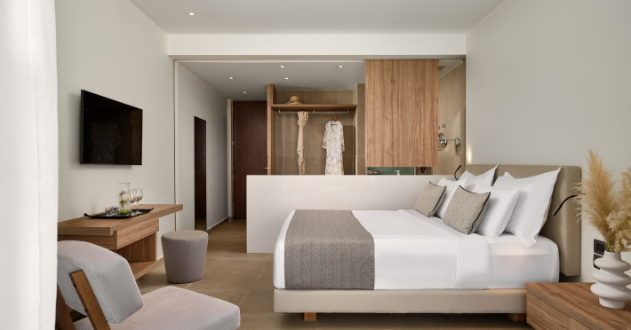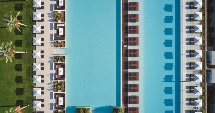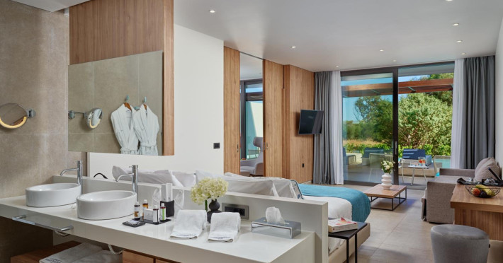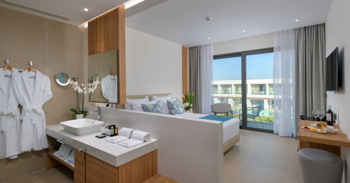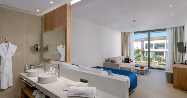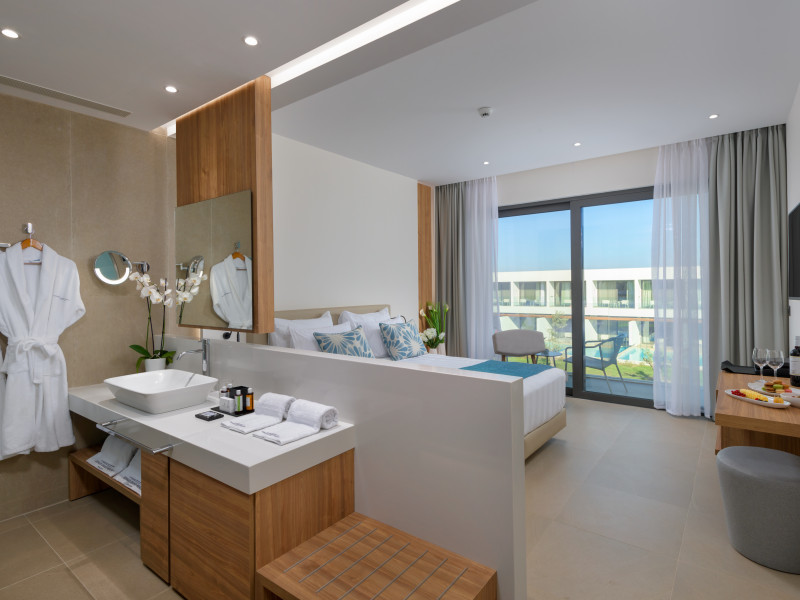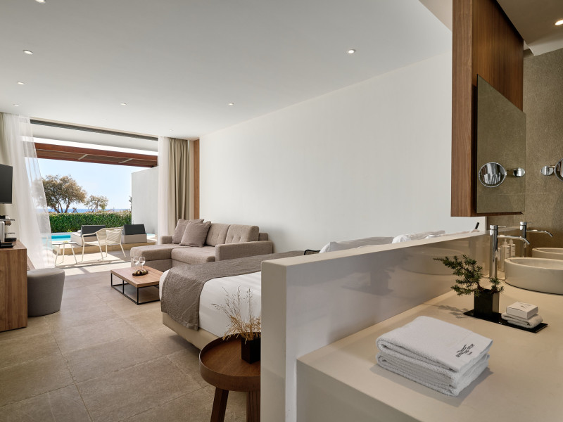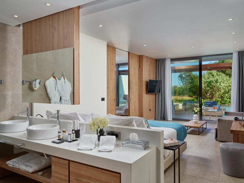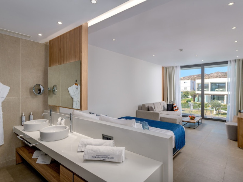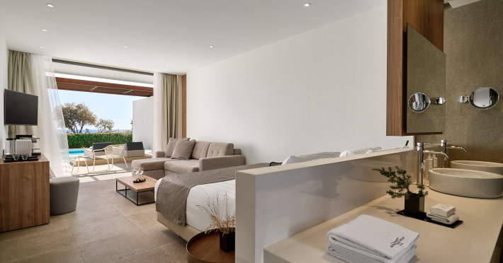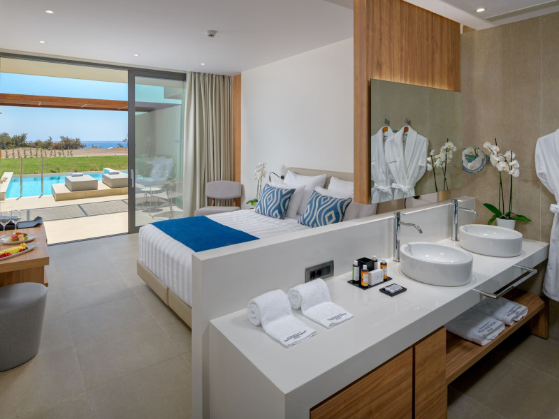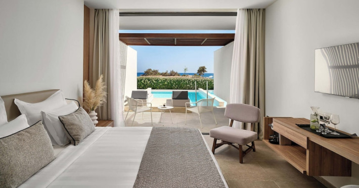 Gennadi Grand Resort, a 5-star eco-friendly beachfront resort in Rhodes, offers luxurious accommodations with private or shared pools.