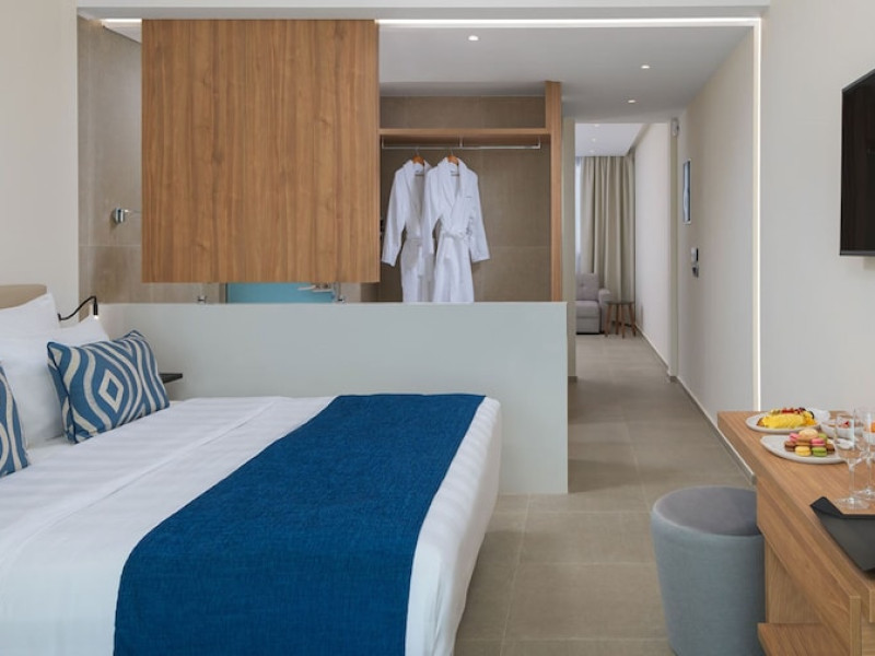 Ideal for swimming and water sports, and in close proximity to the picturesque village of Gennadi, this resort rests on the southeast coast of Rhodes, perfectly positioned between the famed traditional village of Lindos and the southern tip of the island, Prassonissi. Nearby beaches include Gennadi Beach, Lachaniás Beach (4km), and several others within a 13km radius. Diagoras Airport (RHO) is 67 km away. The resort is closed between November 5th and April 15th.Facilities and services include a 24-Hour Reception, E-Concierge Hotel Application, Guest Relations Services, Room Service(extra charge), Laundry & Dry-Cleaning Service(extra charge), Airport Transfers on request(extra charge), Wi-Fi Internet in all Public Areas and at the Beach. Suitable for wheelchair access, parking, Mini market, Boutique Store, Taxi service, Sailing Excursions(extra charge), Babysitting services(extra charge), Doctor on call 24hrs(extra charge), Car Hire Office. Spa, 4 outdoor swimming pools & 1 indoor heated pool, Restaurant and bar. Rooms feature a Open plan bathroom with walk-in shower, Individually controlled Air-conditioning, Full range of Korres branded toiletries, Quality Bathrobes & Slippers, Flat screen LCD TV 43’’, Hair dryer, Safe, Wi-Fi, In-room Welcome offer, Daily refill of Nespresso Coffee & Tea Making Facilities, Mini fridge, Mini bar (upon request at extra charge) and Balcony or Terrace.