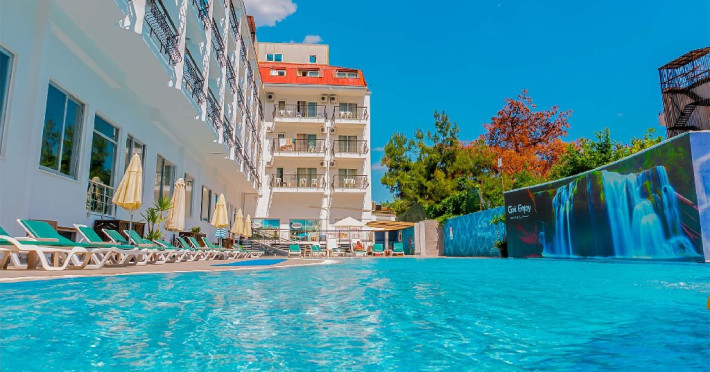 Localizare: Hotelul este situat la 400 de metri de plaja in orasul Kemer si la 45 km de Aeroportul Antalya. Facilitati hotel: Hotelul pune la dispozitia clientilor: piscina in aer liber, Wi-Fi, sala de gimnastica, sezlong, seif (contra cost), telefon (contra cost), sauna, baie turceasca, darts, spalatorie si calcat (contra cost), masaj (contra cost), parc acvatic, parcare, mini club- club pentru copii, restaurant. Dotari camere: Camerele sunt dotate cu aer conditionat, Wi-Fi, minibar, TV, baie proprie, telefon, uscator de par, balcon. Nota informativa: Pentru anumite facilitati din hotel sau din camera, hotelierul poate solicita taxe suplimentare. In momentul sosirii la hotel solicitati receptionerului sa va informeze cu exactitate asupra lor. Website: https://www.getenjoyhotels.com/