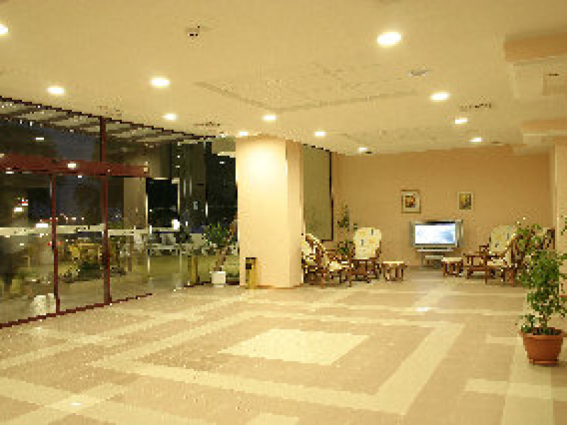The hotel is located in first row of the resort of Golden Sands, only 60 metres from the sandy beach and 100 metres from the resort centre. The closest bus station is about 500 metres away. The hotel is approximately 20 km from the next big city of Varna and 30 km from Varna Airport. The beach hotel is a 6-storey building with 2 lifts and consists of 100 rooms. The premises are air-conditioned and guests are welcomed in a lobby. 24-hour reception and check-out services are available and there are safe boxes at the reception. There is lift access to the upper floors. Guests can dine at a restaurant and bar, and room service is on offer. An Internet café, shop, currency exchange, laundry, doctor services, luggage room, parking and car rental are also at their disposal. All standard rooms have an en suite bathroom with a shower and a WC. Rooms are furnished with double beds. They also have a balcony, central air conditioning and heating, a direct dial phone and satellite television. The minibar can be used for an extra charge. The family room has 2 standard rooms with a connecting door. The sun beds and sun umbrellas on the sun terrace by the outdoor swimming pool and on the beach can be used and incur extra costs. There is also a children's swimming area and refreshments are available from the poolside snack bar. The gym can be used for an extra charge and guests can pamper themselves with a massage treatment during their stay. At the sandy beach guests can choose from a number of activities including waterskiing, jet skiing, diving, motor boating, banana boating and beach volleyball (all activities incur additional fees). Tennis courts are also available (fees apply). There are breakfast and dinner buffets, which guests can enjoy in the hotel's restaurant.