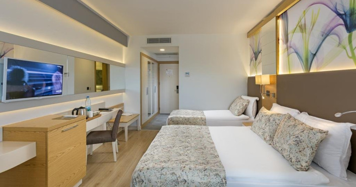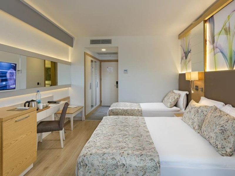 Localizare Hotel Glamour Resort and SpaHotelul Glamour Resort and Spa este situat in regiunea turistica Colakli, la o distanta de 55 km de aeroportul din Antalya, 12 km de orasul Side si 15 km de orasul Manavgat. Tip de masa: All inclusive Plaja: Hotelul Glamour Resort and Spa este situat la o distanta de 350 de m de plaja. Hotelul ofera oaspetilor sai transfer gratuit. Dotari camere: Camerele hotelului dispun de: aer conditionat, balcon, telefon, seif (contracost), mini bar, uscator de par, fierbator de apa, wifi. Facilitati generale: Hotelul ofera urmatoarele facilitati: restaurant principal si doua restaurante A la carte, unul cu specific Italian si unul cu specific Turcesc, 3 baruri, welness and spa, mini club (pentru copii intre 4 - 12 ani), o piscina interioara incalzita pe perioada de iarna, piscina exterioara si piscina pentru copii, sala de fitness, animatie.