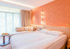 - Mobilata similar unei camere standard, cu o zona de living suplimentara cu o canapea