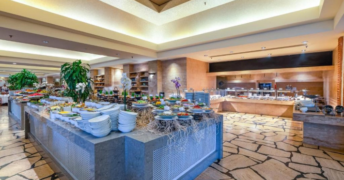 Mic dejun tip bufet, pranz si cina in restaurantul principal, diverse gustari pe tot parcursul zilei si al noptii. Bauturi alcoolice si nealcoolice locale, precum si bauturi spirtoase importate selectate, sunt servite 24/7 la anumite baruri. Oaspetii pot lua masa la restaurantul international, italian sau spaniol o data pe sejur; este necesara rezervarea. Alte restaurante sunt contra cost.