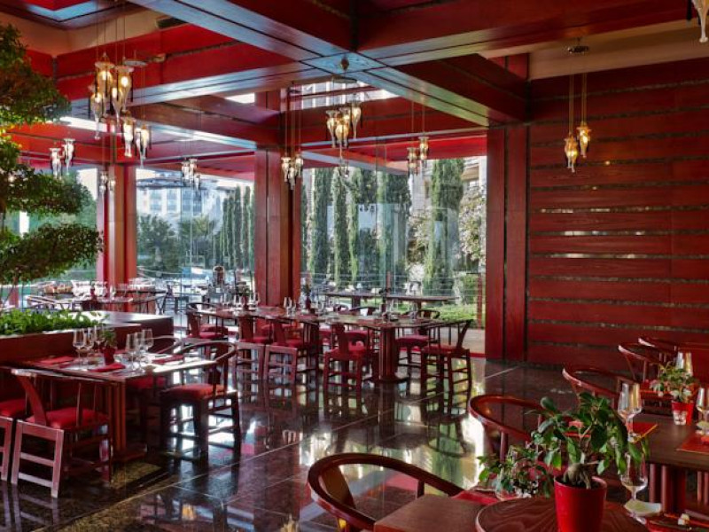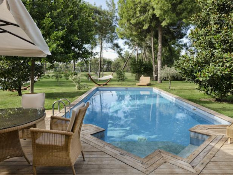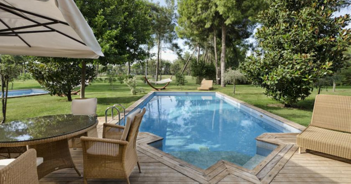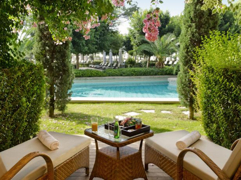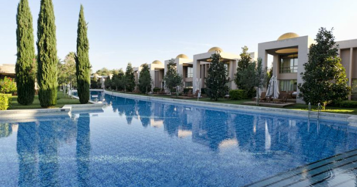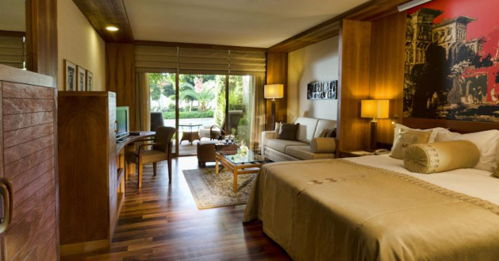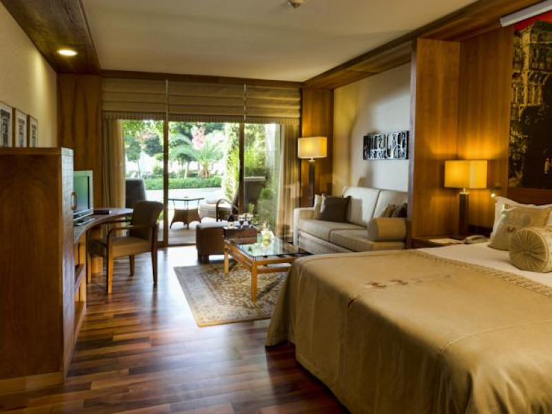Hotelul Gloria Serenity Resort are plaja de nisip privata, iar accesul spre aceasta se face pe un pod, deoarece hotelul este despartit de plaja printr-un rau.