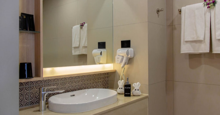 Located in Karon Beach, GLOW Mira Karon Beach offers accommodation with an outdoor swimming pool, a fitness centre, and a shared lounge. This 4-star hotel features air-conditioned rooms with free WiFi and private bathrooms. Guests can enjoy room service, a 24-hour front desk, and currency exchange. The hotel has 154 rooms with complimentary wireless internet access, flat-screen televisions with cable programming, safes, and free tea/coffee. Bathrooms include showers, complimentary toiletries, bidets and a hairdryer.