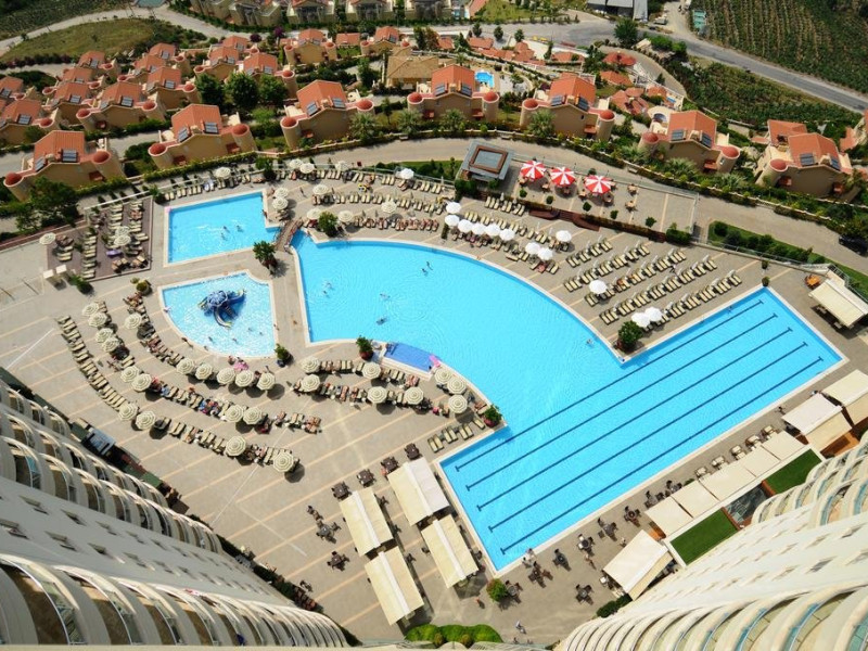 Facilitati generale:Hotelul ofera oaspetilor sai urmatoarele facilitati: restaurant principal, 3 baruri, patiserie, 4 restaurante a la carte, aquapark cu 20 de tobogane, piscina olimpica, piscina pentru relaxare, piscina pentru copii, cinema, sauna, baie turceasca, piscina interioara, centru fitness, tenis de masa, terenuri de tenis, basket, volei, terenuri de fotbal. Servicii cu plata: rezervare pentru restaurantele a la carte, bauturile de import, fresh-uri din fructe, masaj si alte tratamente in centrul Spa, bowling, biliard, internet cafe, sporturi acvatice.