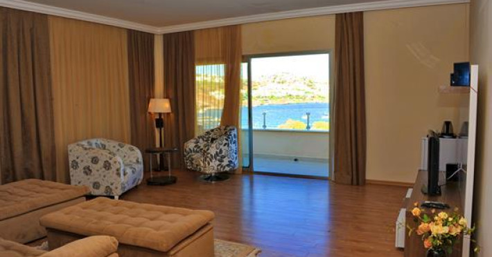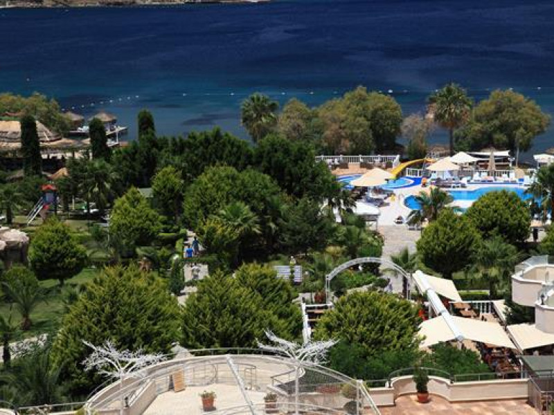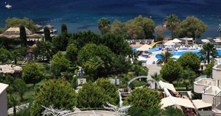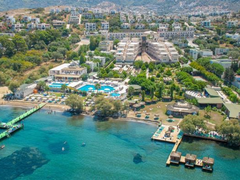 In the Golden Age Bodrum Hotel you will find vast green areas, beautiful gardens with colorful flowers and trees, playgrounds for children. Huge greenery, blue water and clear air rich in oxygen will let you enjoy the nature of Aegean.The Golden Age Bodrum Hotel placed on the sea coast in the middle of a green garden has two main outside pools, one indoor pool, three pools for children, two water slides, private beach and a pier.Enjoy spectacular sunsets or sunbathe on the sandy beach, relax using the hammocks in green gardens or beach cushions. Accommodation is in 3 storey villas in the garden,anex or in the main building. The town of Yalıkavak 2 km , the city of Bodrum 20 km and the Bodrum airport just 40 km away. Taxi and minibus are avalibale for your transportation. Perfect for everyone seeking a warm atmosphere , ensuring an enjoyable holiday.