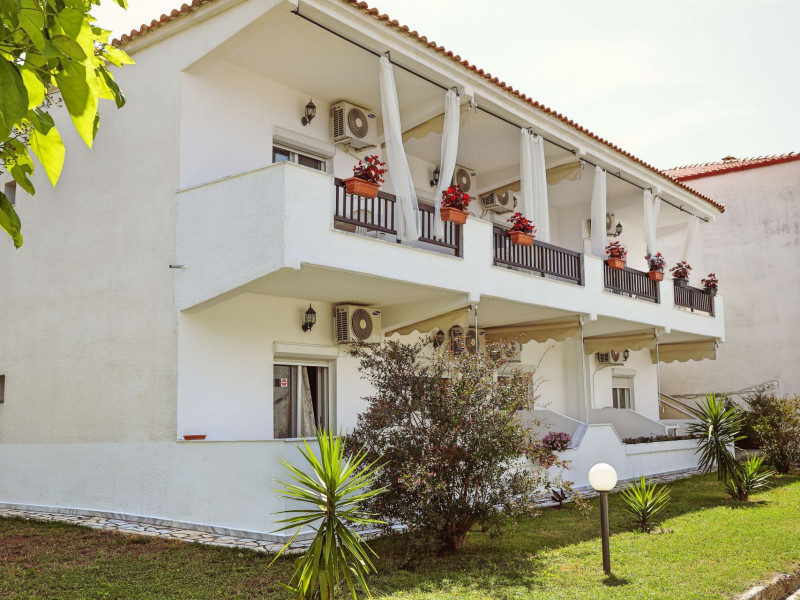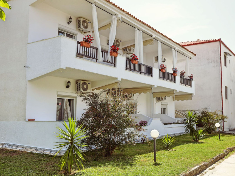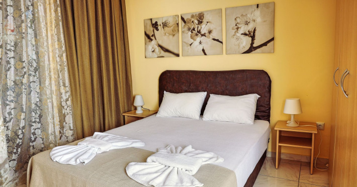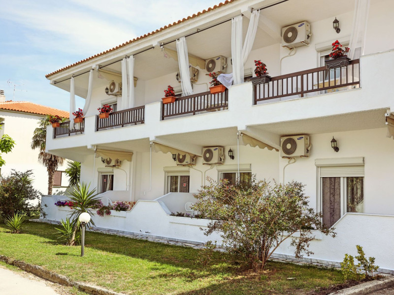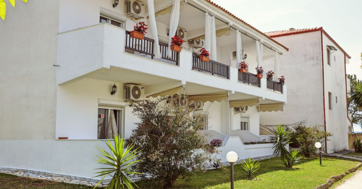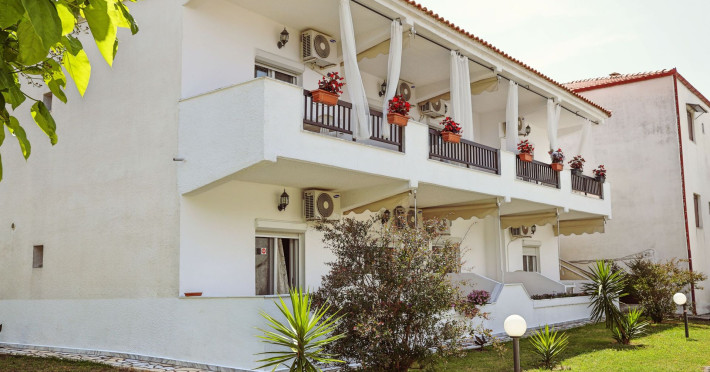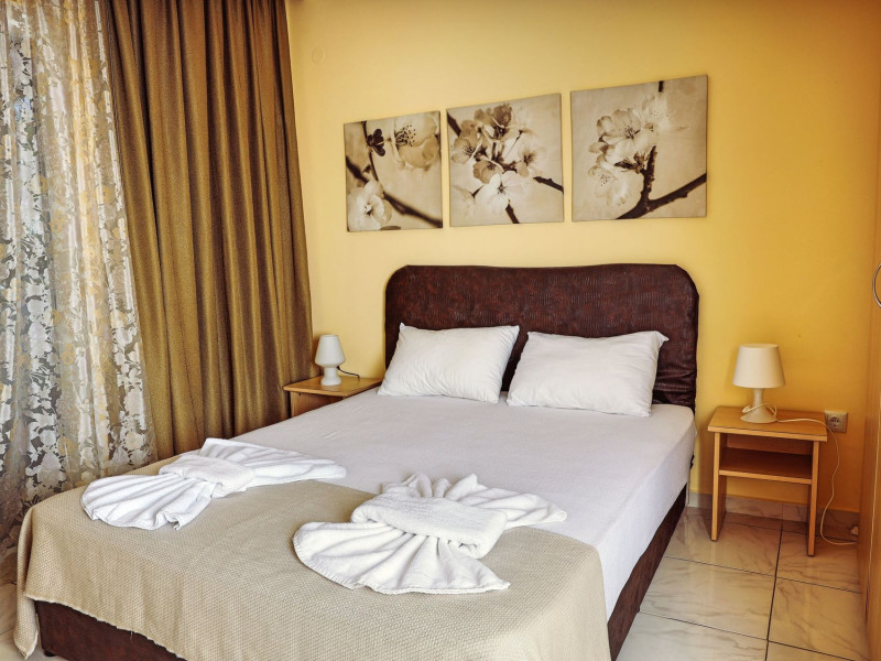Golden Deer Apartments are located on Skala Fourkas, just a few meters from the beach. The apartment complex is consisting of 7 apartments, split in two floors. The four apartments on the ground floor have direct access to the garden, while the upper floor apartments have their own balcony. The beach is 1-minute walking distance and the nearest shops and restaurants are a few meters away. The apartments are furnished, consisting of a bedroom, a fully equipped kitchen, a bathroom with shower and a furnished bathroom. The apartments are suitable for families or friends up to 3 adults, as the living room can accommodate extra person on either a sofa bed or an extra bed. Baby cot is available as well.