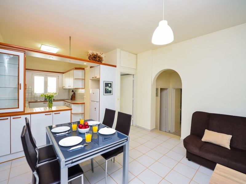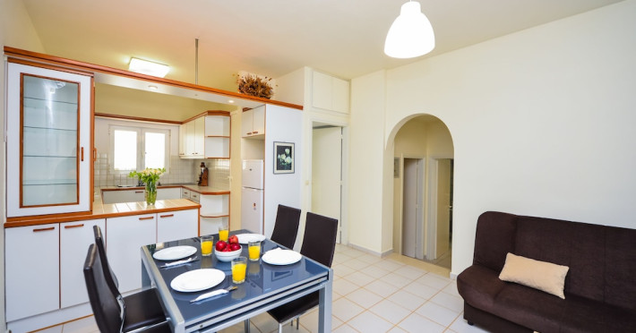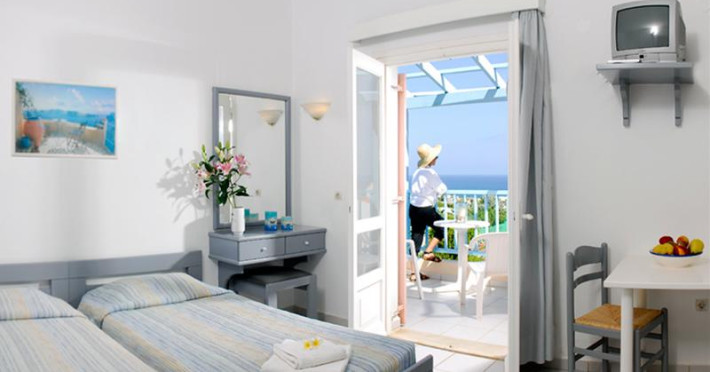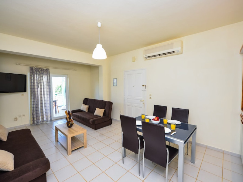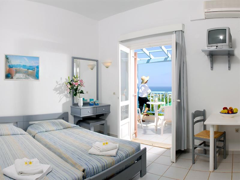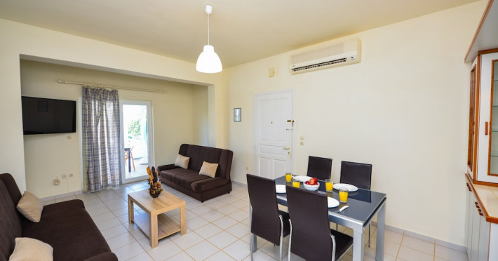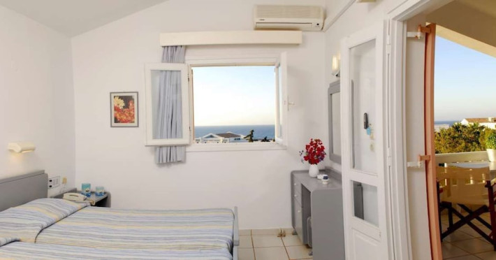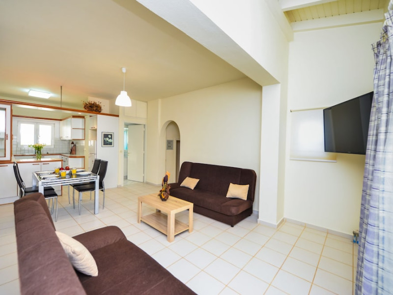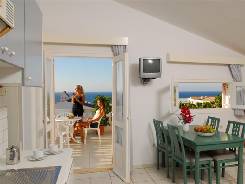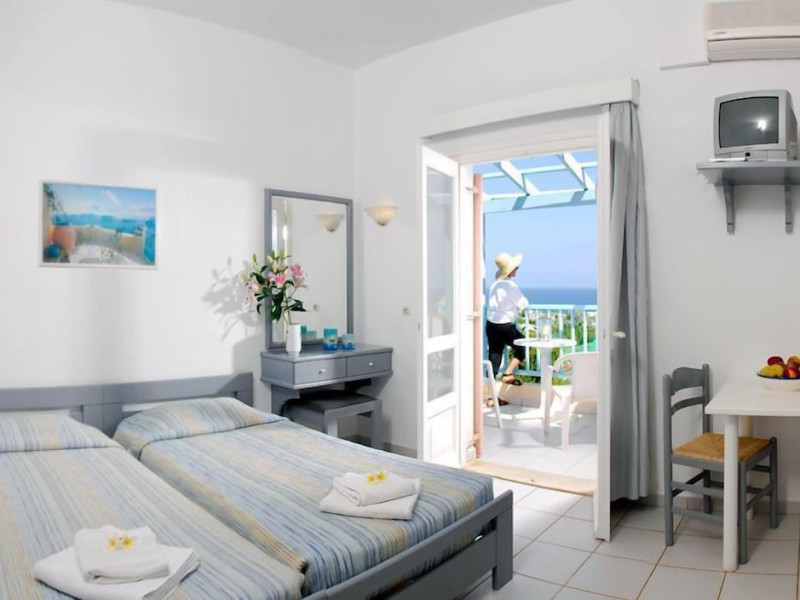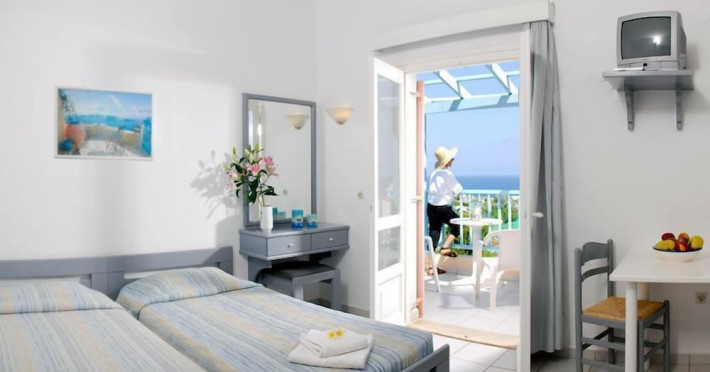 The Golden Dream is a complex of apartments located approximately 2 km from the famous cosmopolitan seaside resort of Hersonissos with its taverns, restaurants and night life, as well as being 500 m from the sea, where you can find a variety of water sports, and 100 m away from the nearest shops. Right next to the Golden Dreams there are the Thalasso therapy unit of the Aldemar-Royal Mare Village and a tennis centre. Heraklion airport is 24 km from the complex.The facilities and services include reception, pool area with an outdoor pool, sun terrace, snack pool bar, free wireless internet access in the pool bar and gardens with lawn, flowers and trees.The apartments and studios are equipped with A/C, safe (both with extra charge), telephone, TV, fully equipped kitchenette (with fridge, electric oven and cooking utensils), balcony, and bathroom with shower and hairdryer. The apartments feature a living room with two large built-in sofas that can be used as beds, and a separate bedroom. All apartments can sleep up to 4 persons. The studios are open plan and feature a bedroom with two beds.The apartments are cleaned twice a week and the linen and the towels are changed twice a week.**Air conditioning is working from June to September with extra charge.****Accommodation of 3rd and 4th person on sofa bed in living area.**Note: meals will be served in the neighboring hotel Chrissi Amoudia approximately 300 m away.The hotel also features parking facilties.Address: Anissaras, 70014 Hersonissos, Heraklion, Crete, Greece.