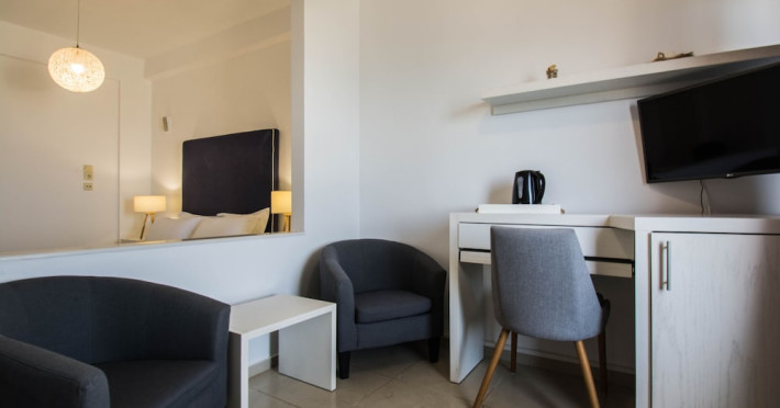 Facilities and services include air conditioning, bar, airport shuttle(extra charge), laundry facilities(extra charge), and Wi-Fi access. Rooms feature TV, air conditioning, private bathroom, bath or shower, and balcony/terrace. Address: Palaia EO Agiou NIkolaou - Irakliou 71500, Kokkini Hani Greece.