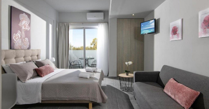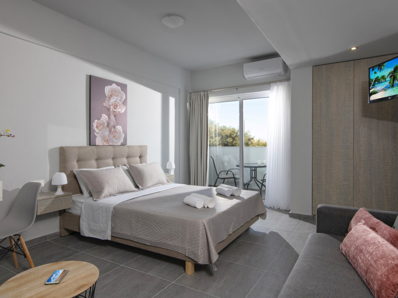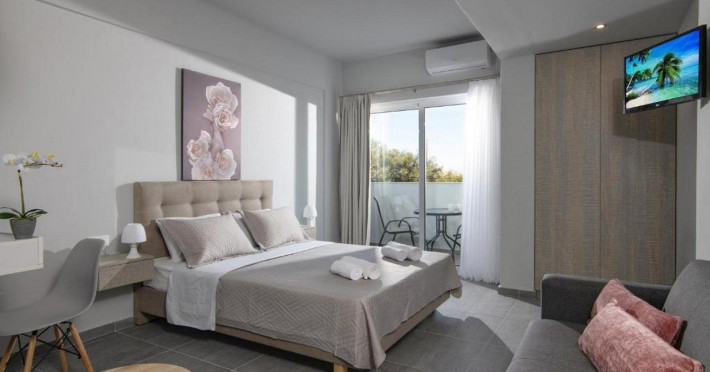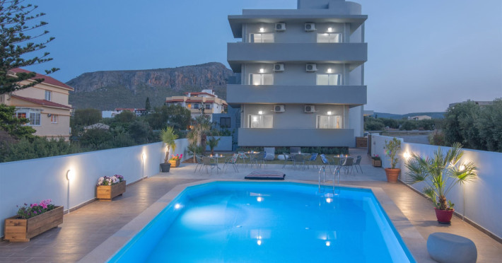 Facilities and services include car park, bar, swimming pool, air conditioning, free Wi-Fi/internet access and elevator/lift.The rooms feature air conditioning, free Wi-Fi/internet access, television, balcony/terrace, hairdryer and telephone.Cleaning/housekeeping is provided 5 times a week and change of linens/towels is twice a week.Please note that some of the above facilities may be closed due to weather / seasonal conditions.Address: Kato Gouves, Kokkini Hani 71500, Crete, Greece.