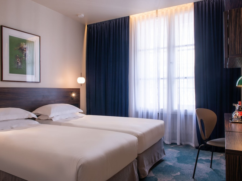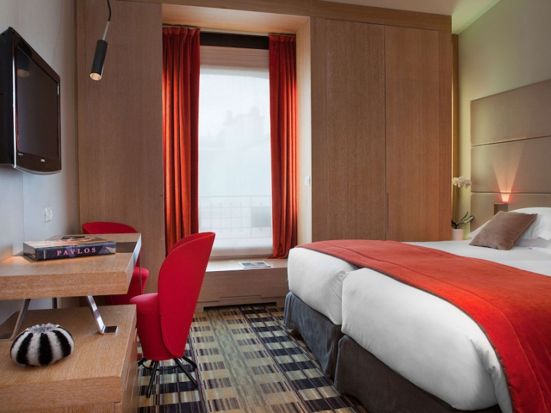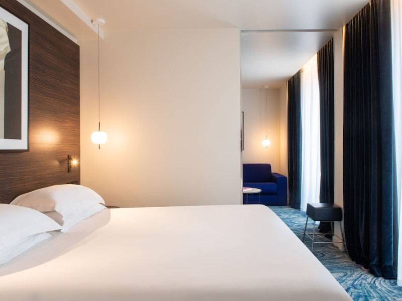 Located in the heart of Paris, the Golden Tulip Opera de Noailles is a 4-star hotel within walking distance of the Palais Garnier and Boulevard Haussmann. The hotel offers air-conditioned and soundproofed rooms with complimentary Wi-Fi, a minibar, and a flat-screen television with digital programming. Private bathrooms feature rainfall showerheads and complimentary toiletries. Guests can enjoy a buffet breakfast daily (for a fee) and room service during limited hours. The hotel has a bar/lounge, a computer station, and offers concierge services, dry cleaning/laundry services, and babysitting (surcharge). Guests have complimentary access to a sauna and a small fitness center. Massages, body treatments, and facials are available. An airport shuttle is available for a surcharge (24 hours). Other amenities include complimentary newspapers in the lobby, luggage storage, safety deposit boxes, and a ticket service. Smoking is prohibited in the hotel; designated smoking areas are available. The GOLDEN TULIP OPERA DE NOAILLES is a Tourist hotel. The nightlife/restaurants are located in the hotel.